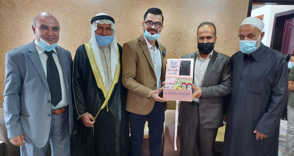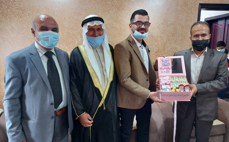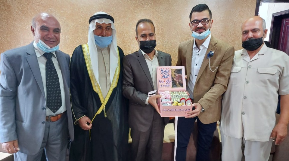 2020-11-15 تم بحمد الله وتوفيقه عقد قران الشابة سارة عمار مصطفى طباسي أسعد بدوي الأغا إلى أ. صالح هاني يوسف العقاد بارك الله لكما وبارك عليكما وجمع بينكما فى خير.