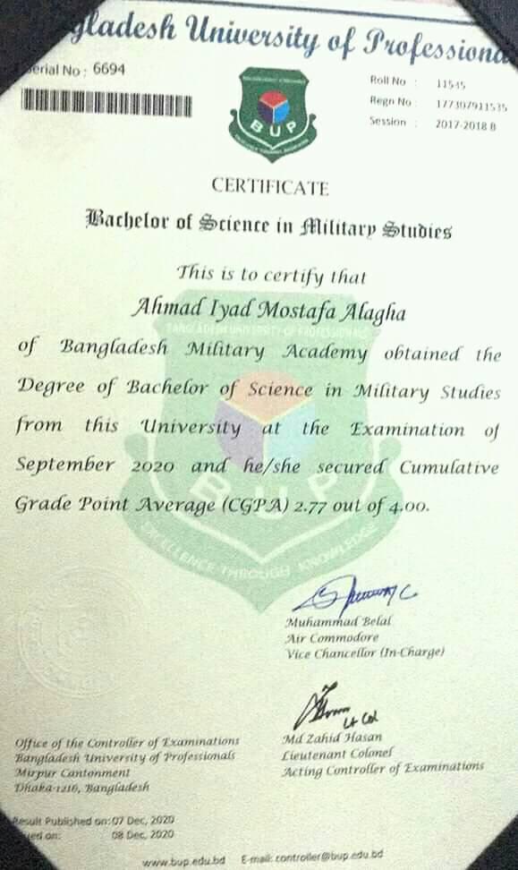 الرئيسة/تخرج بكالوريوس/بنغلادش- تخرج أ. أحمد إياد مصطفى أحمد مصطفى الأغا تخرج بكالوريوس بنغلادش- تخرج أ. أحمد إياد مصطفى أحمد مصطفى الأغا تاريخ النشر : الثلاثاء | 22-12-2020 | 22:10 4348 بنغلادش- تخرج أ. أحمد إياد مصطفى أحمد مصطفى الأغا في الكلية العسكرية وحصوله على رتبة ملازم والف مبارك. اضغط هنا للتواصل أو التعرف على أ. أحمد إياد مصطفى أحمد مصطفى الأغا يمكنك تلقي أحدث الأخبار أول بأول بانضمامك لإحدى مجموعات الواتساب الخاصة بالعائلة من خلال الضغط هنـا اظهر المزيد