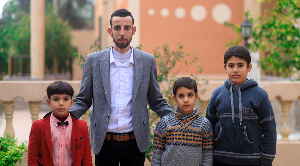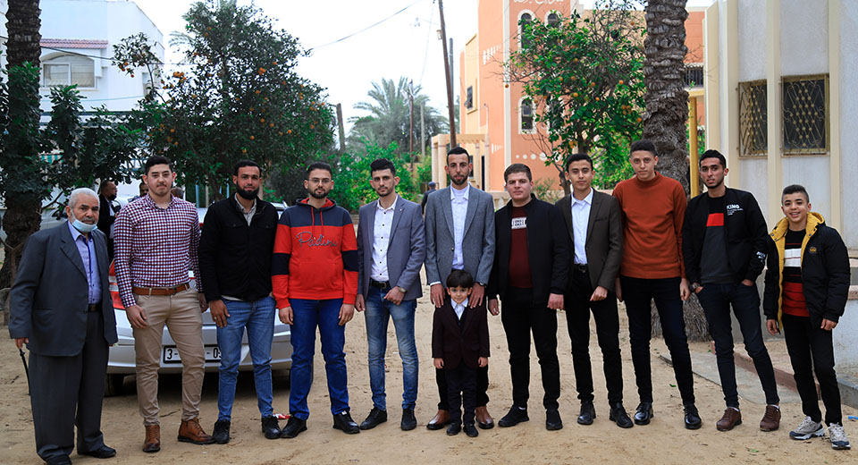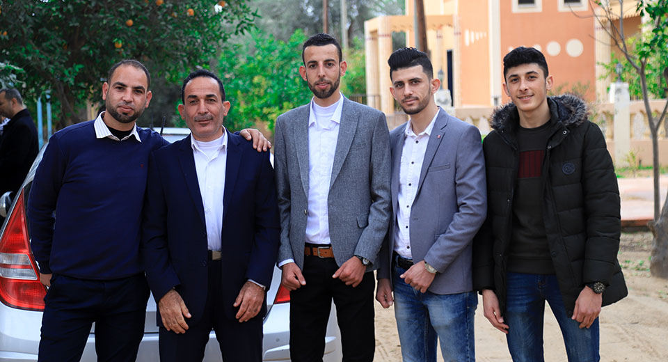 يحيى بهاء وشقيقته ألاء (إبنا شقيق العريس)، العريس، عبد الله وشقيقه بلال العقاد (إبنا شقيقة العريس)