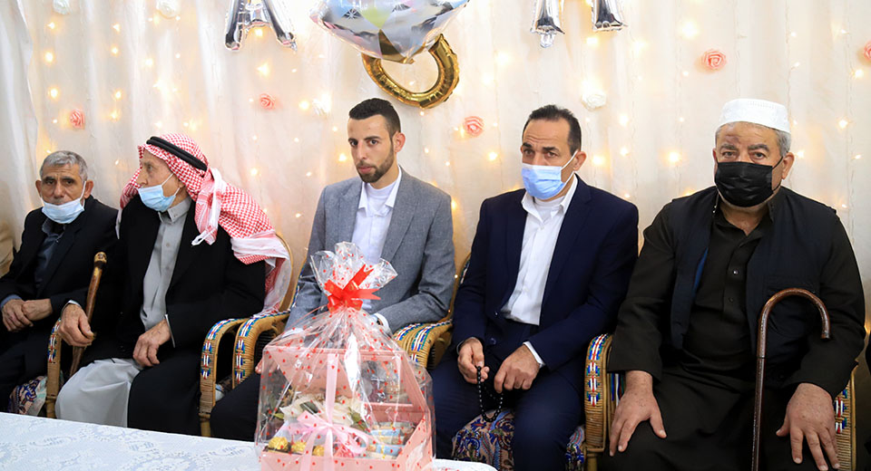 عبد الله جواد وشقيقه أ.سعيد، أ. أحمد سعيد وشقيقه أ. عماد، أ. محمد يحيى، العريس، والد العروس، أ. جواد سعيد ونجله أ. محمد، سعيد أحمد