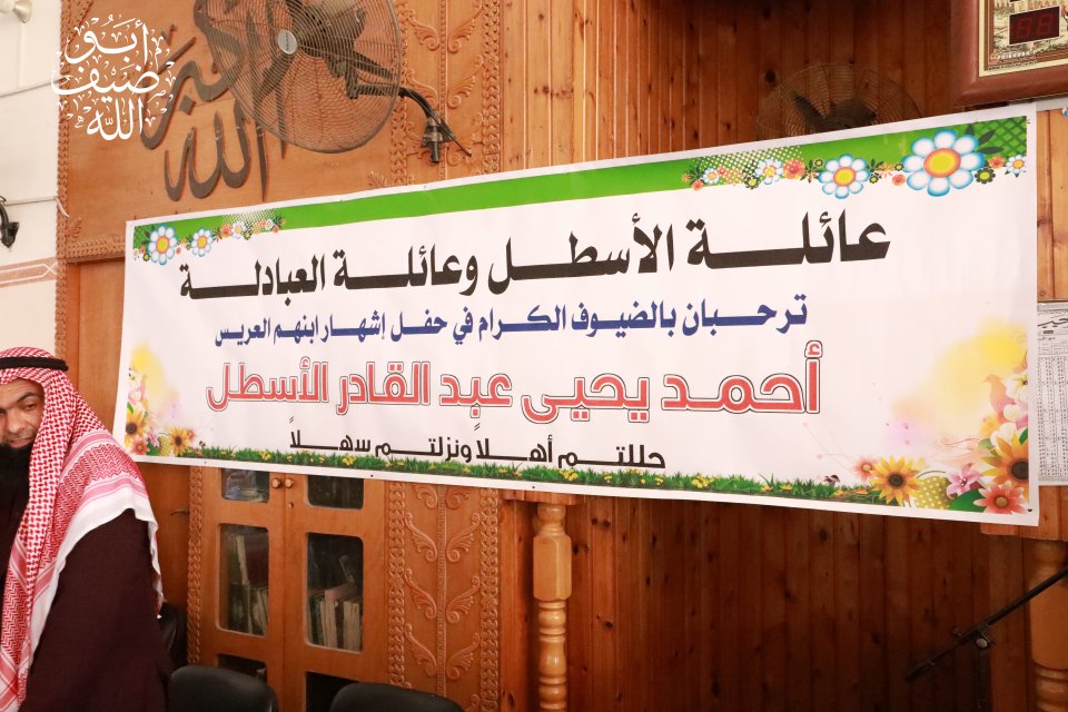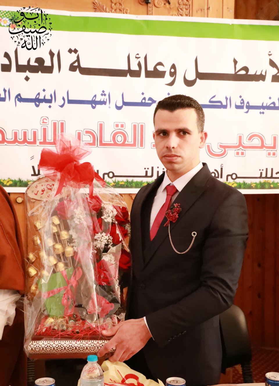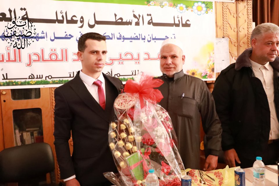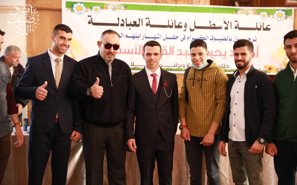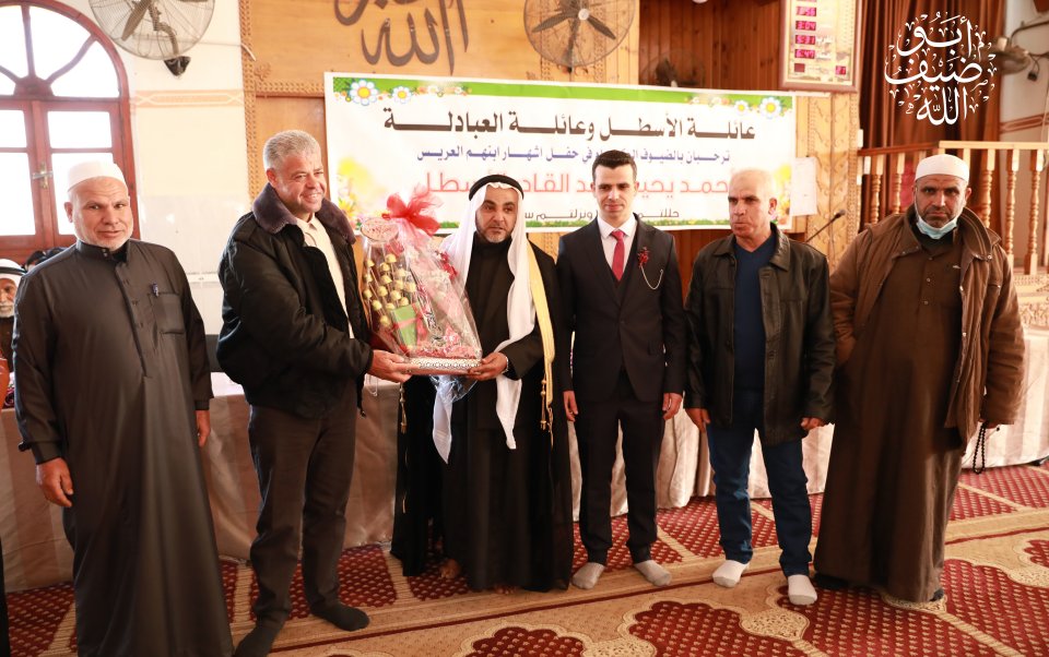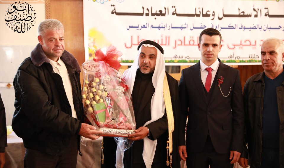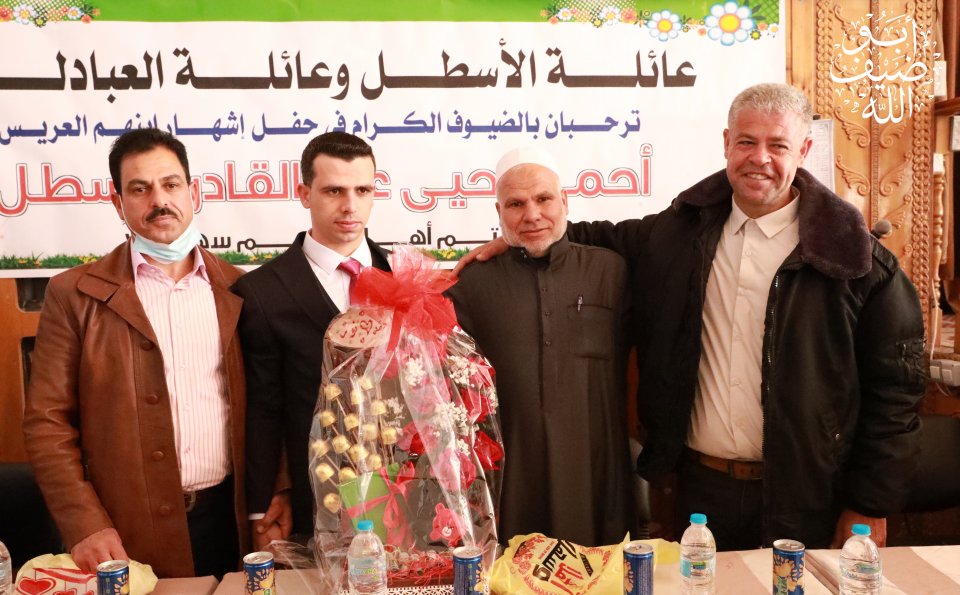 يسعدنا محمد ضيف الله وعائلته ممثلين بالحاج/ ضيف الله وانجاله الكرام أن نزف أسمى آيات التهاني و التبريكات للشيخ الإمام/ يحيى عبد القادر الاسطل ( أبوأحمد ) والسيدة الجليلة (أم أحمد ) بمناسبة عقد قران نجلهما " أحمد يحيى الأسطل " على صاحبة الصون والعفاف " نور نظير العبادلة "