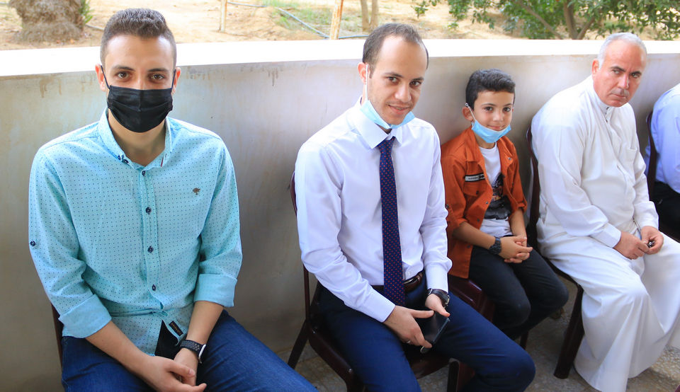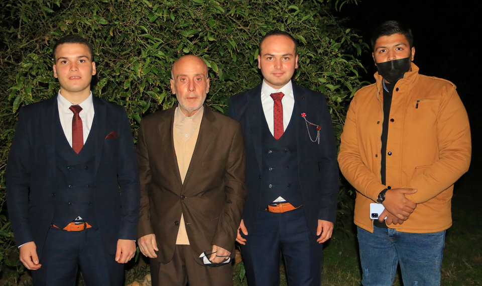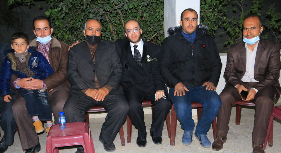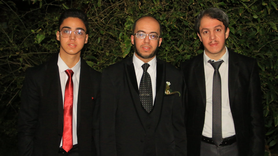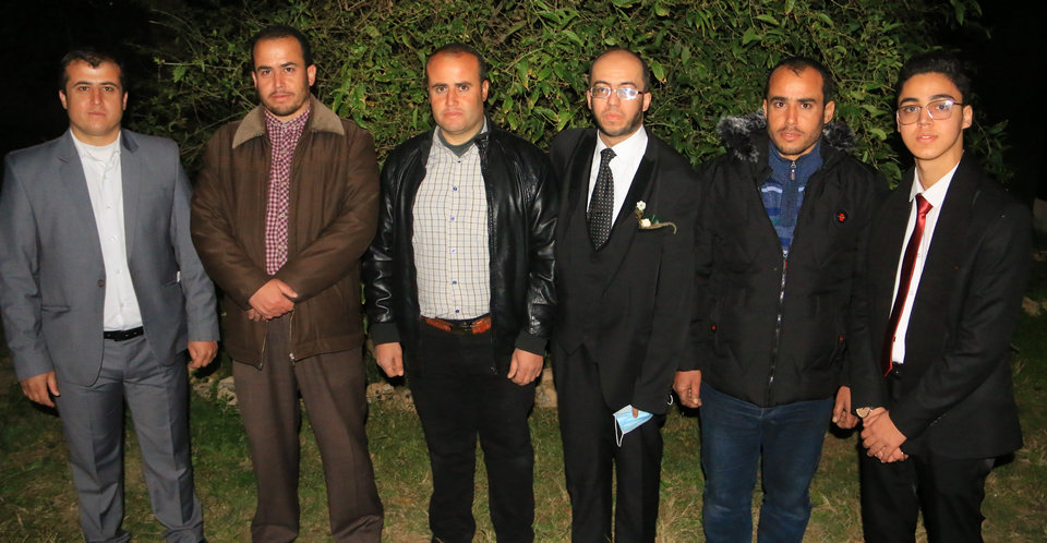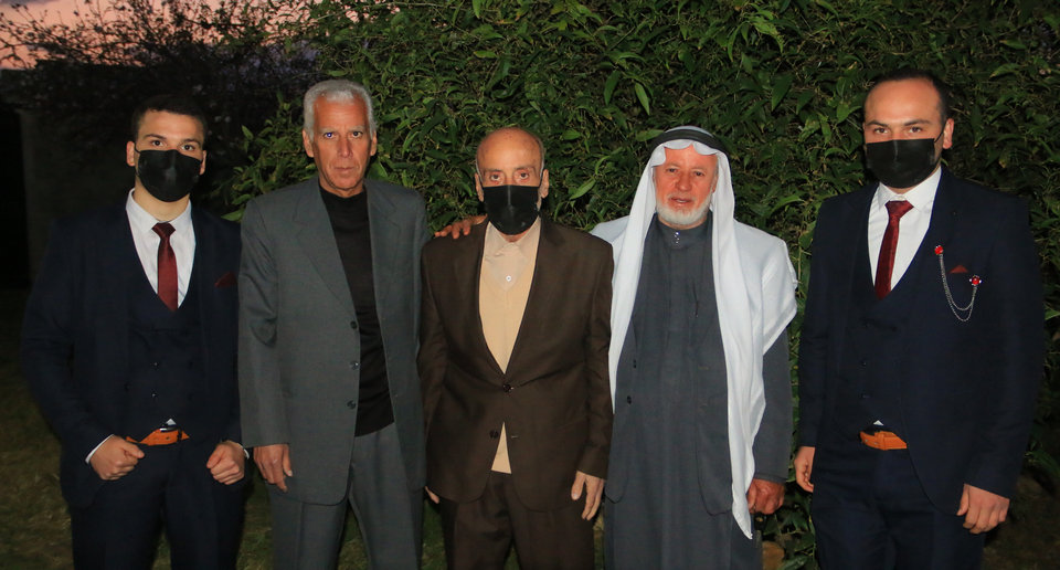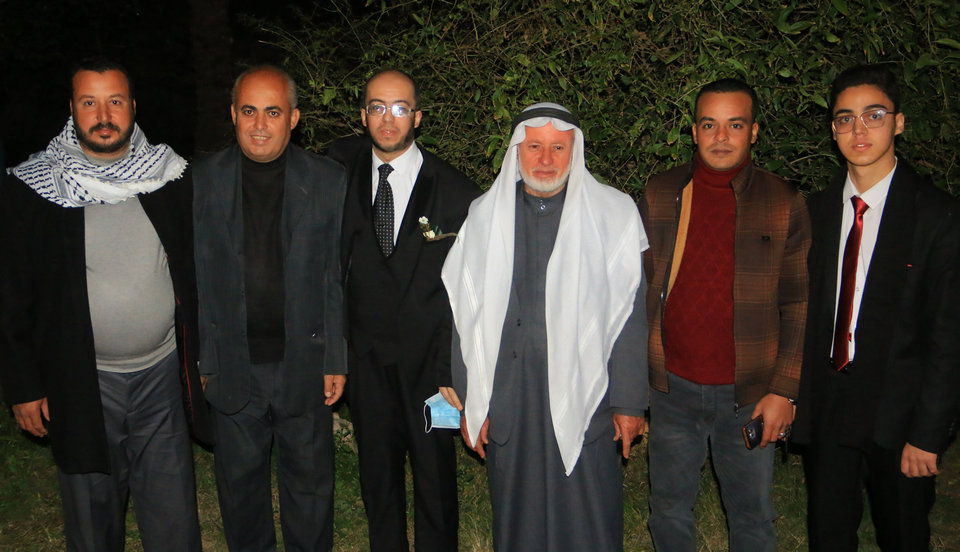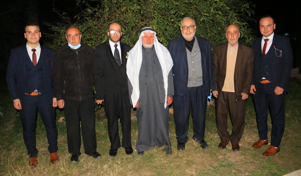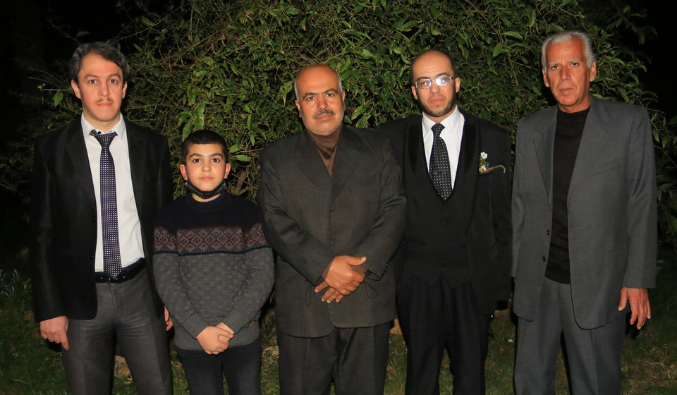 أ.احمد(شقيق العروس)، أ.ماجد ابراهيم(والد العروس)، د.سامي ابراهيم(عم العروس)، الحاج سعيد ربيع(خال العريس)، العريس، أ.سعدي محمد(عم العريس)، محمد(شقيق العروس)