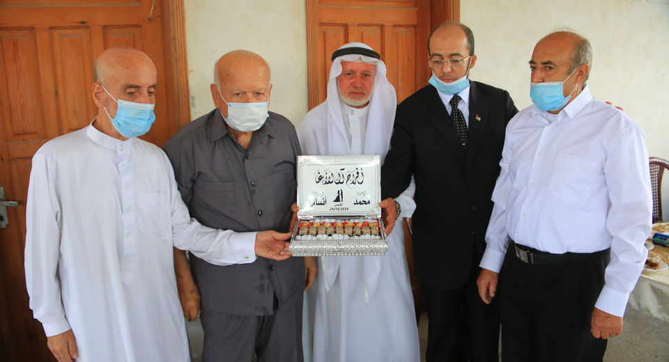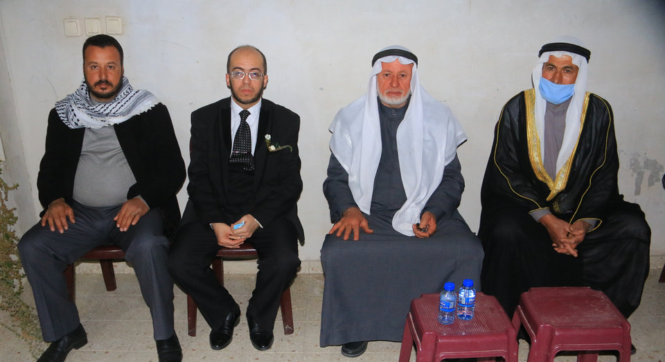 أ.ماجد إبراهيم الأغا(والد العروس)، العريس أ.محمد أسعد الاغا، أ.سعدي محمد الاغا(عم العريس)