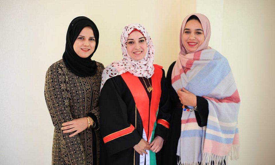 الباحثة وصديقاتها هيا وافي ، أميرة الفرا