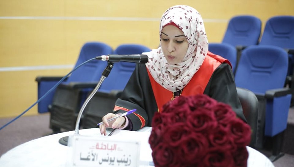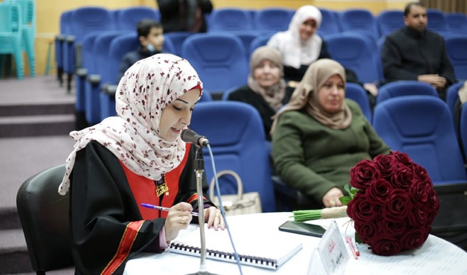 2021-02-17 تم بحمد الله وتوفيقه منح الأستاذة زينب يونس خميس أحمد فالوجي الأغا درجة الماجستير تخصص صحافة من الجامعة الاسلامية كأول رسالة ماجستير في هذا السياق وبحضور مناقِشة خارجية من العراق والتي بعنوان "معالجة المواقع الفلسطينية الإلكترونية الإخبارية لقضايا العنف ضد المرأة" حيث تكونت لجنة المناقشة من د.أمين وافي "مشرفا ورئيسا" و أ.د. سناء أبو دقة "مناقشا داخليا" و أ.د. إرادة الجبوري "مناقشا خارجيا" من العراق الشقيق عبر تطبيق google meet..مع أجمل التهاني والأمنيات بالمزيد من التوفيق والسداد والنجاح، سائلين الله عز وجل أن ينتفع به العباد والبلاد. ألف ألف مبارك