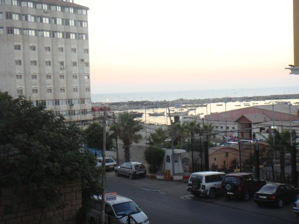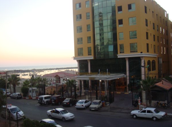 يبدو فى الخلف ميناء غزة للصيادين بالقرب من فندق سيتى ستار