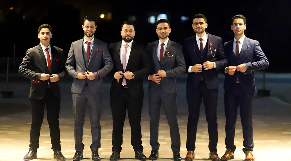أ. لؤي (شقيق العريس)، أ. إبراهيم أبو النجا، أ. سمير النفار، العريس، أ. أحمد البطة، أ. خالد شبير، أ. رمضان (شقيق العريس)