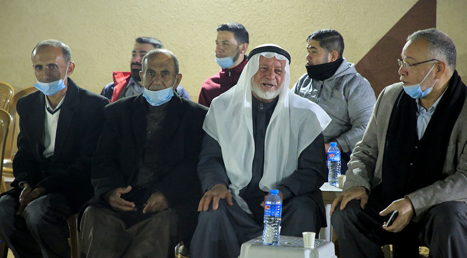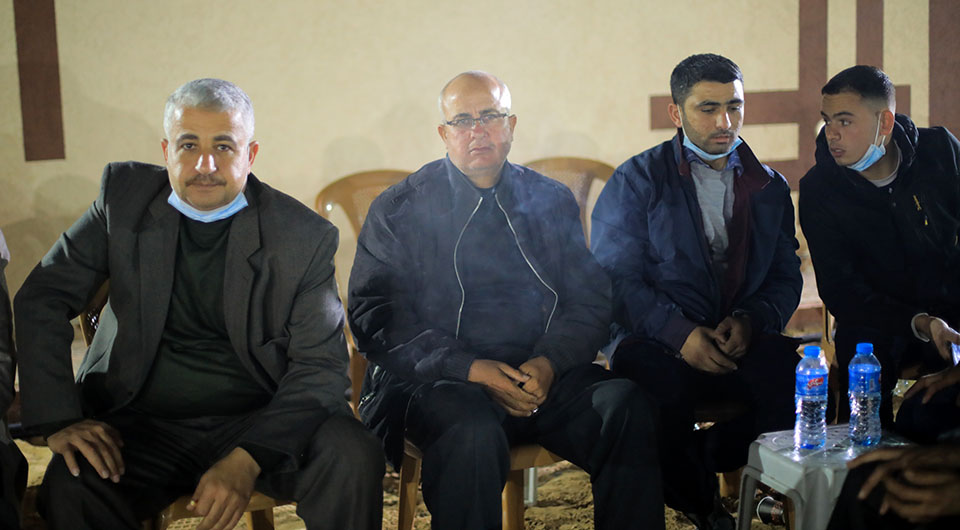 السيد عوني حمدان، السيد عادل أبو جزر، أ.د محمد رمضان (عم العريس)، والد العريس
