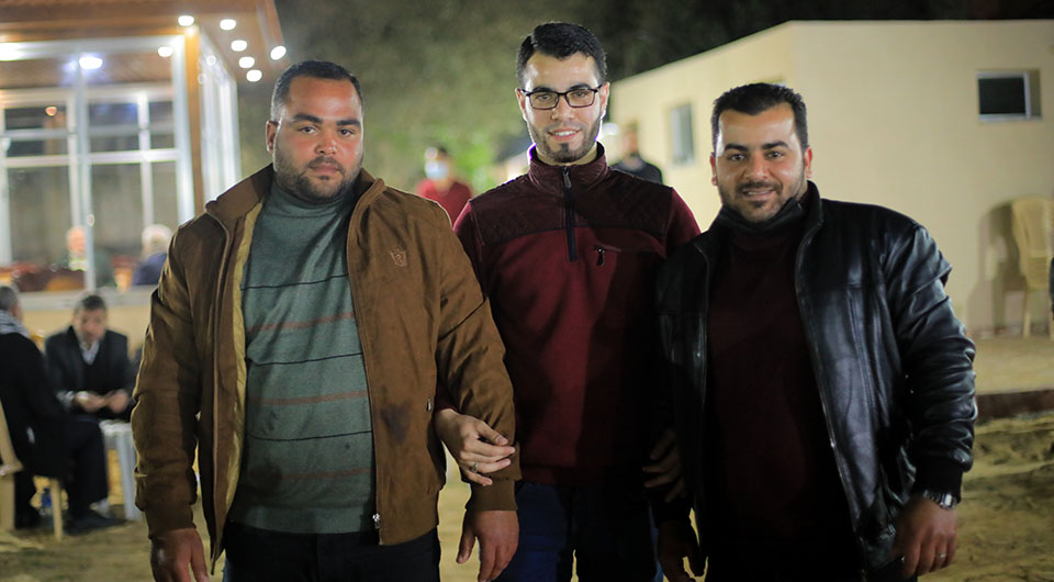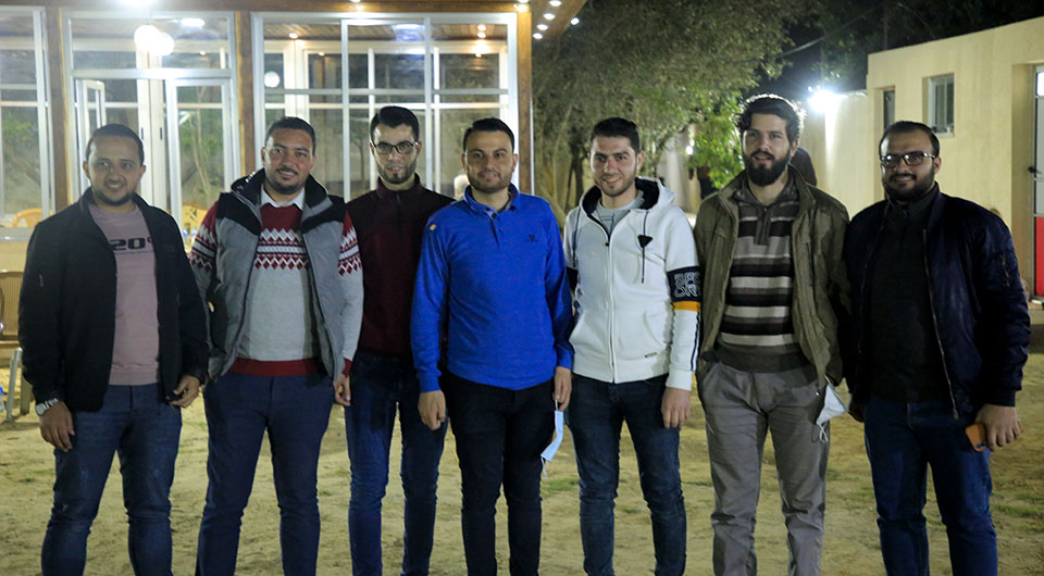 أ. محمد العامودي، أ. زكريا مصطفى، أ. عبد العزيز الأسطل، العريس وشقيقه لؤي، أ. أحمد عصام، أ. أبو ياسر غانم