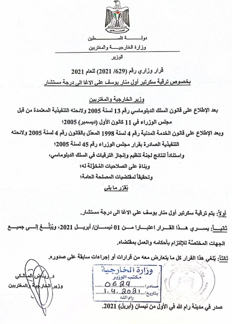 الرئيسة/تعينات وترقيات/ترقية الأستاذ منار يوسف الأغا الى درجة مستشار دبلوماسي بسفارة فلسطين تعينات وترقيات ترقية الأستاذ منار يوسف الأغا الى درجة مستشار دبلوماسي بسفارة فلسطين تاريخ النشر : الجمعة | 16-04-2021 | 20:18 4053 ترقية الأستاذ منار يوسف الأغا الى درجة مستشار دبلوماسي بسفارة فلسطين بزيمبابوي اضغط هنا للتواصل أو التعرف على الأستاذ منار يوسف علي عثمان الأغا يمكنك تلقي أحدث الأخبار أول بأول بانضمامك لإحدى مجموعات الواتساب الخاصة بالعائلة من خلال الضغط هنـا اظهر المزيد