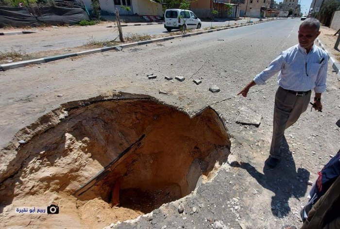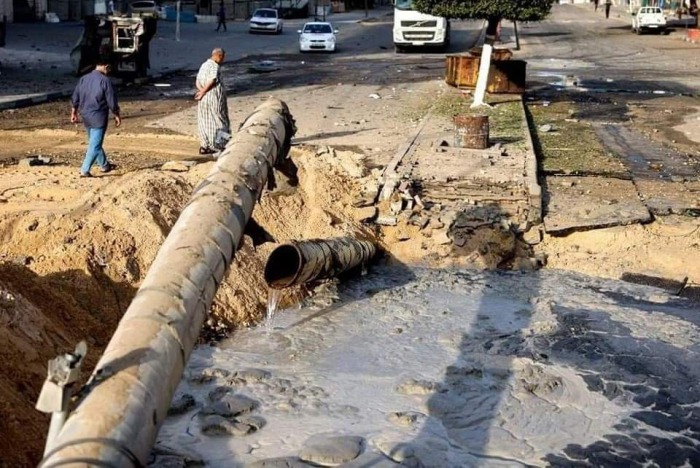 الاحتلال يقصـــف تمديدات الصرف الصحي في شارع الصفطاوي شمال مدينة غزة.