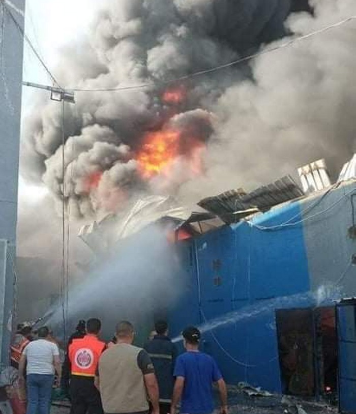 سيطرت طواقم الدفاع المدني على حريق في مصنع اسفنج جراء قصف الاحتلال شمال قطاع غزة.