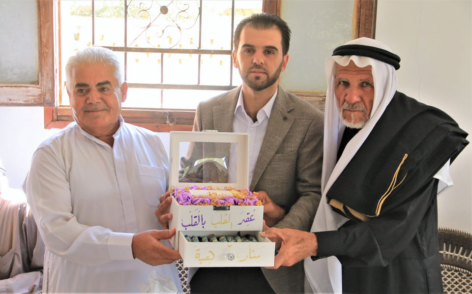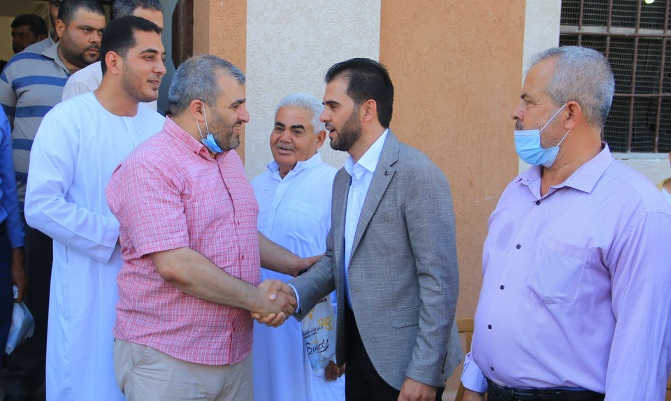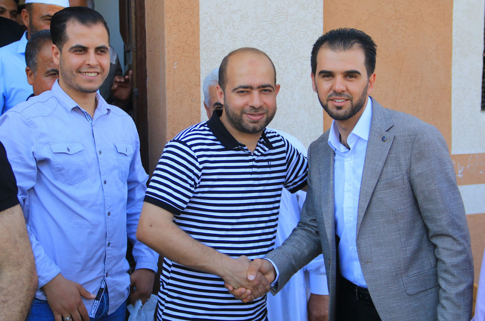 الحاج نعيم ابراهيم وافي(والد العريس)، أ.منار(العريس)، أ.سامي صبحي الاغا(والد العروس)