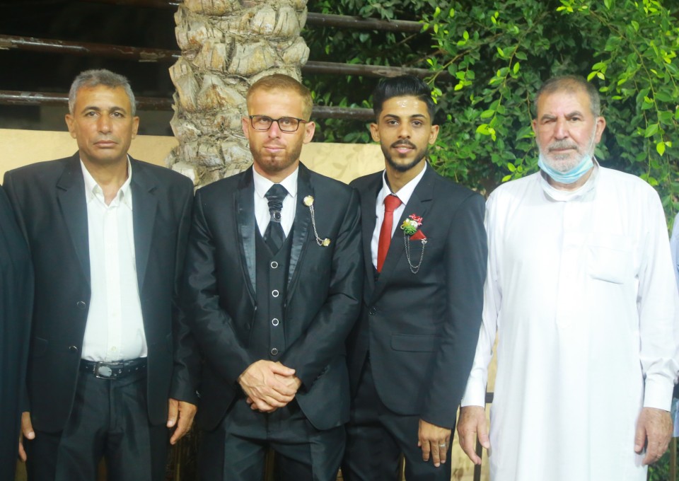 أ.إحسان(والد العروس) ، العريس ، أ.هاني اللحام(عديل العريس) ، أ.بلال الأسطل