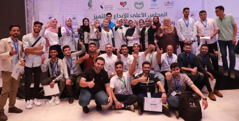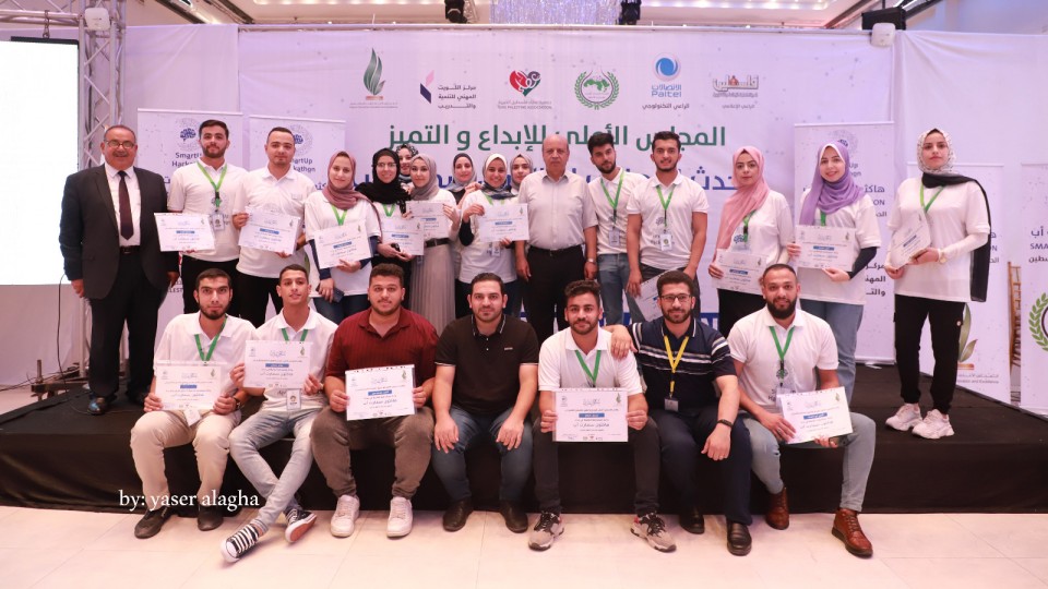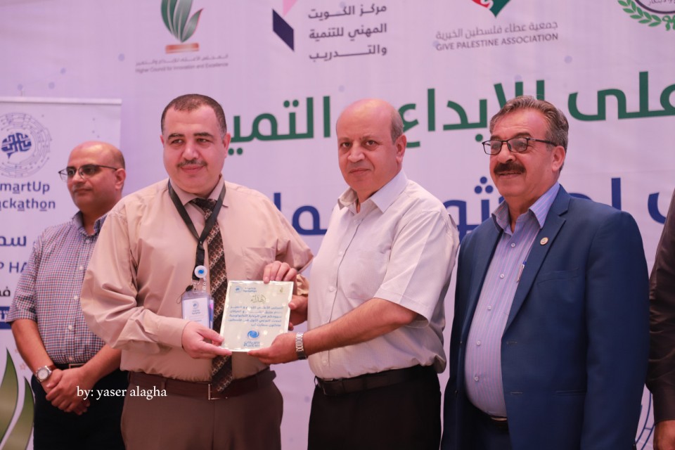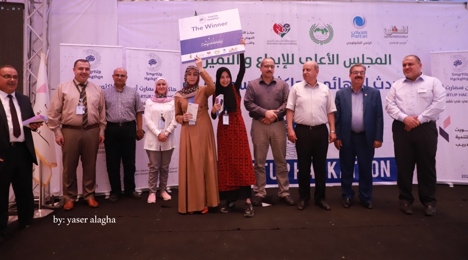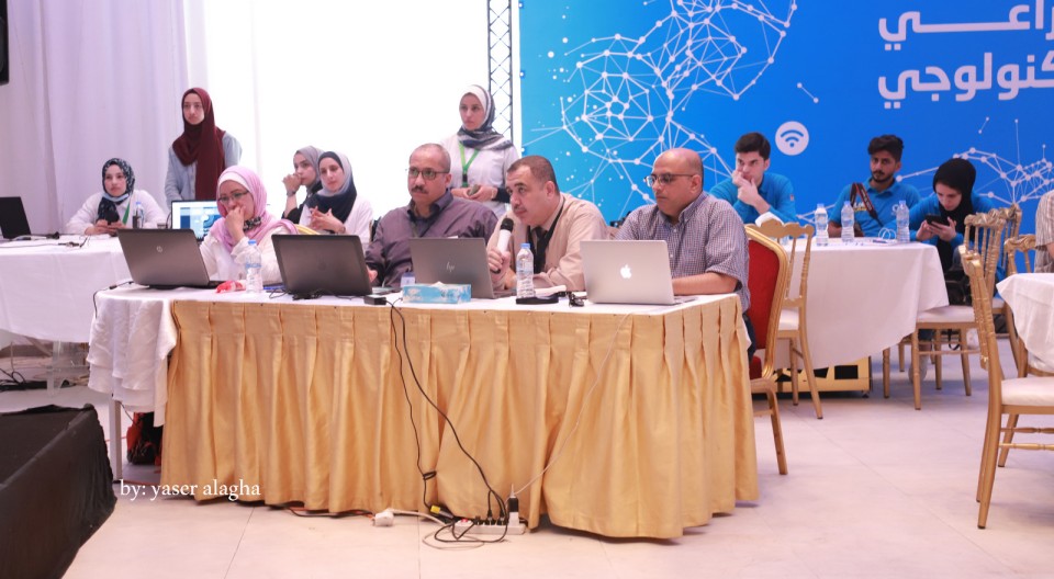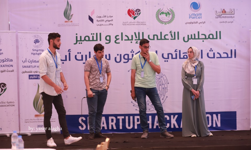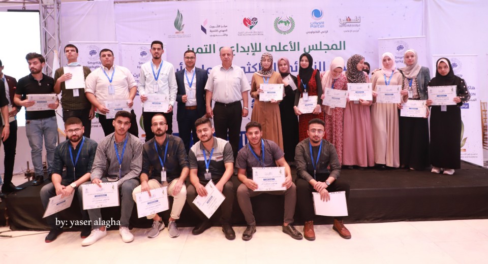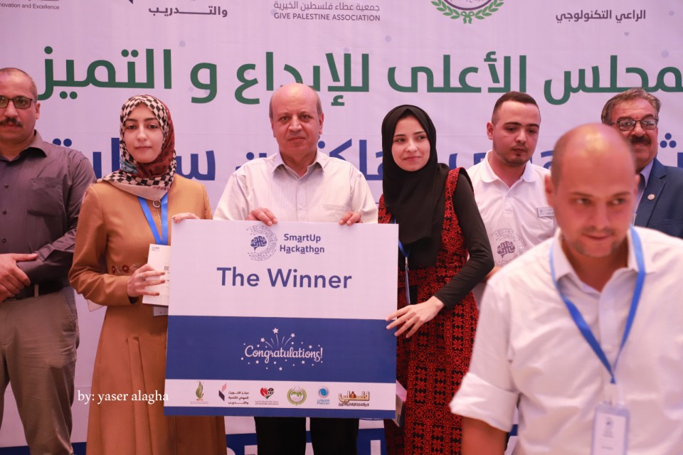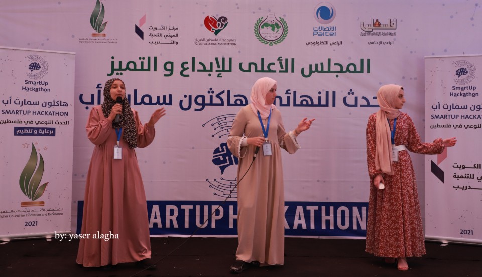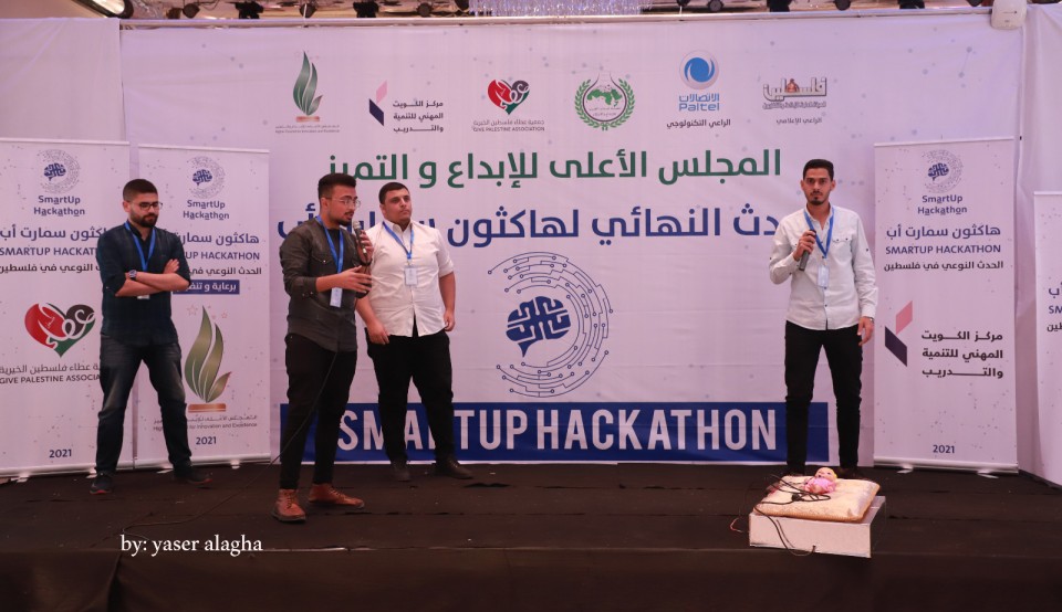 حفل اختتام الحدث النهائي لهاكثون سمارت اب الذي نفذ بالشراكة بين المجلس الأعلى للإبداع والتميز وجمعية عطاء فلسطين و المركز الكويتي المهني للتنمية والتدريب التابع لجمعية الرحمة للإغاثة والتنمية وقد تميز وابدع المشاركون في تقديم مشروعاتهم الخلاقة وقدموا افكارا ابداعية مبتكرة