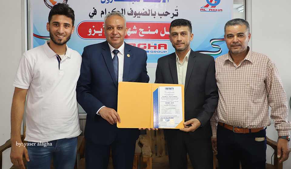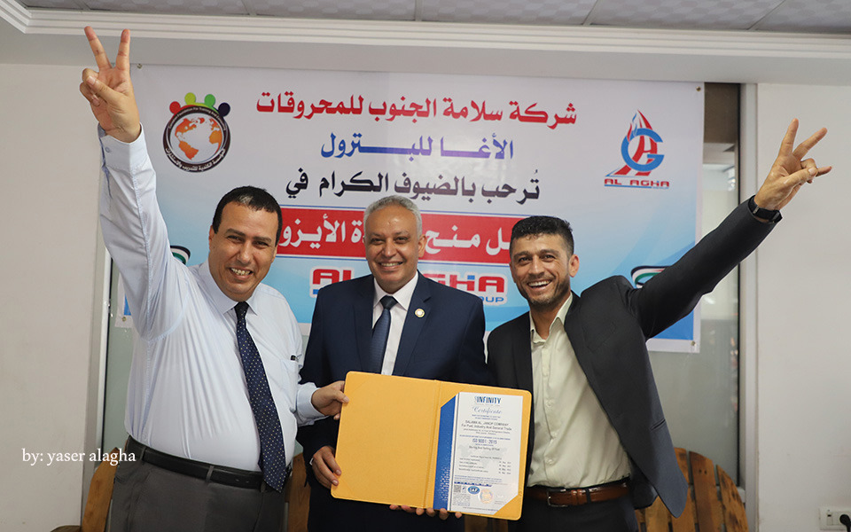 خان يونس – منحت مؤسسة INFINITY وممثلة عنها المؤسسة الكندية للتدريب والاستشارات ورئيسها د.أشرف العيسوي، شركة سلامة الجنوب للمحروقات على شهادة الجودة العالمية ( الأيزو )، ISO 9001:2015 كأول شركة بترول في فلسطين تحصل على هذه الشهادة، وذلك بحضور محافظ محافظة خان يونس د. أحمد الشيبي، ومعالي الوزيرة د. هيفاء الأغا، ورئيس بلدية خان يونس د. علاء الدين البطة، وسعادة المهندس عماد الأغا عضو اللجنة القيادية العليا لحركة فتح، وشخصيات من المجتمع المحلي.
