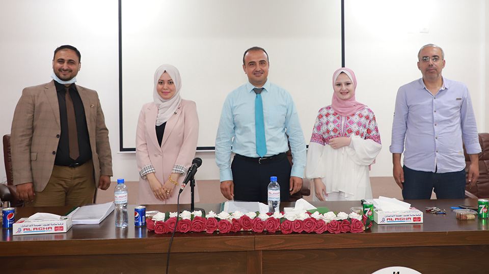 مناقشة مشروع التخرج للطالبة شذى محمد حلمي الأغا للحصول على درجة البكالوريوس بتقدير إمتياز مع مرتبة الشرف الأولى والتوصية بالنشر.
