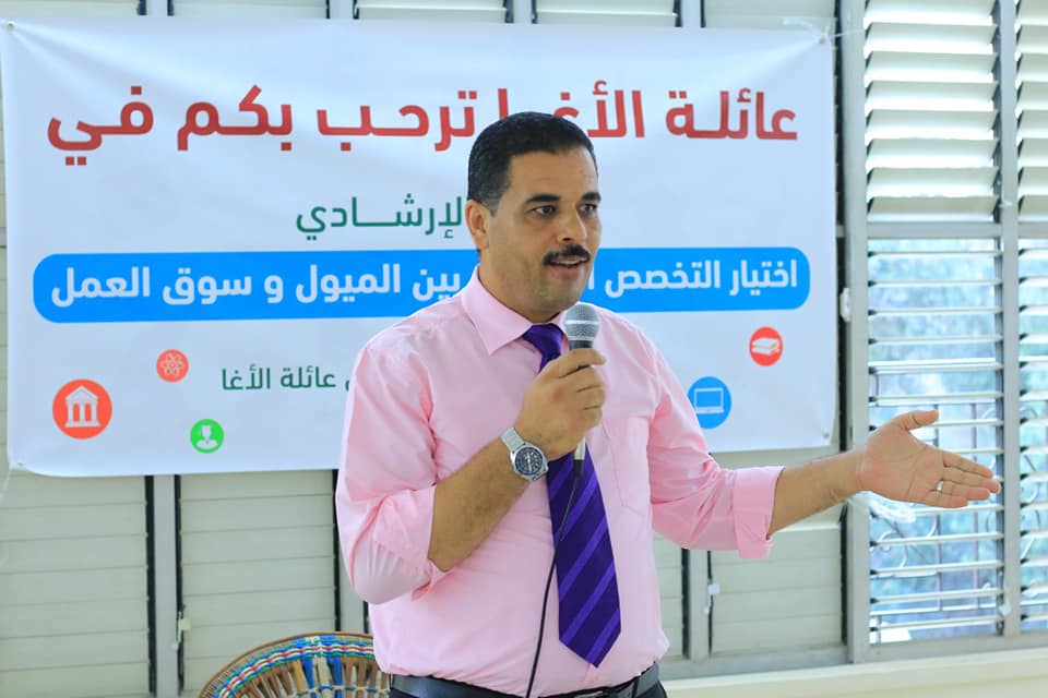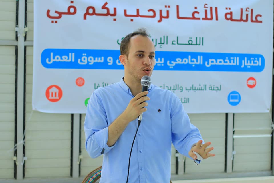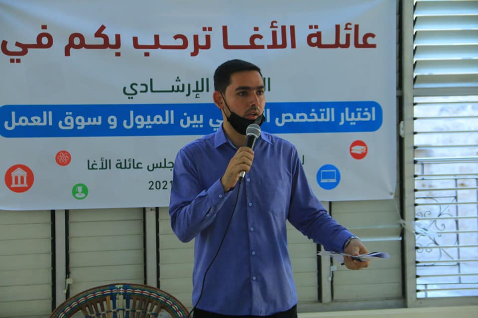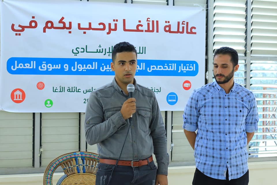بحضور أكاديميين وممثلين عن الجامعات والكليات المختلفة بقطاع غزة، وبحضور وجهاء من عائلة الأغا وممثلين عن مجلسها، فقد عقدت لجنة الشباب والإبداع بالعائلة لقاءها الإرشادي للناجحين والناجحات من طلبة الثانوية العامة بعنوان: (اختيار التخصص الجامعي بين الميول وسوق العمل)، حيث تحدث فيه الأكاديمي المميز الدكتور: أديب الأغا عن استراتيجيات اختيار التخصص الجامعي، وتخلل اللقاء مداخلات لكفاءات وخبرات من أبناء العائلة للحديث عن بعض التخصصات المطروحة في الجامعات وللإجابة على استفسارات الطلبة، وفي نهاية اللقاء توجه الطلبة لممثلي الجامعات المختلفة للإطّلاع على ما تقدمه هذه المؤسسات.