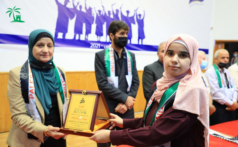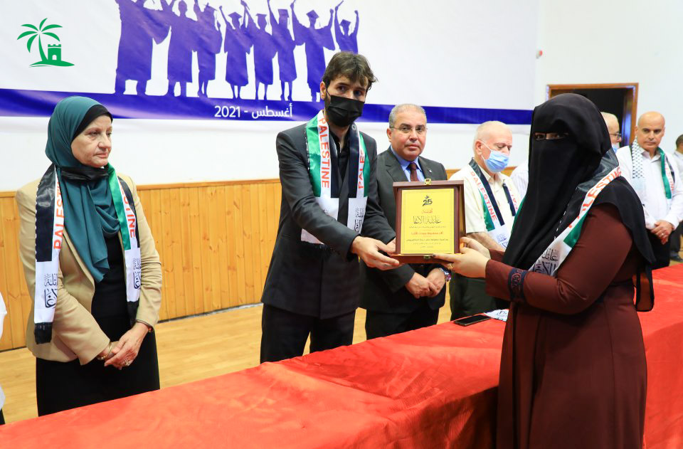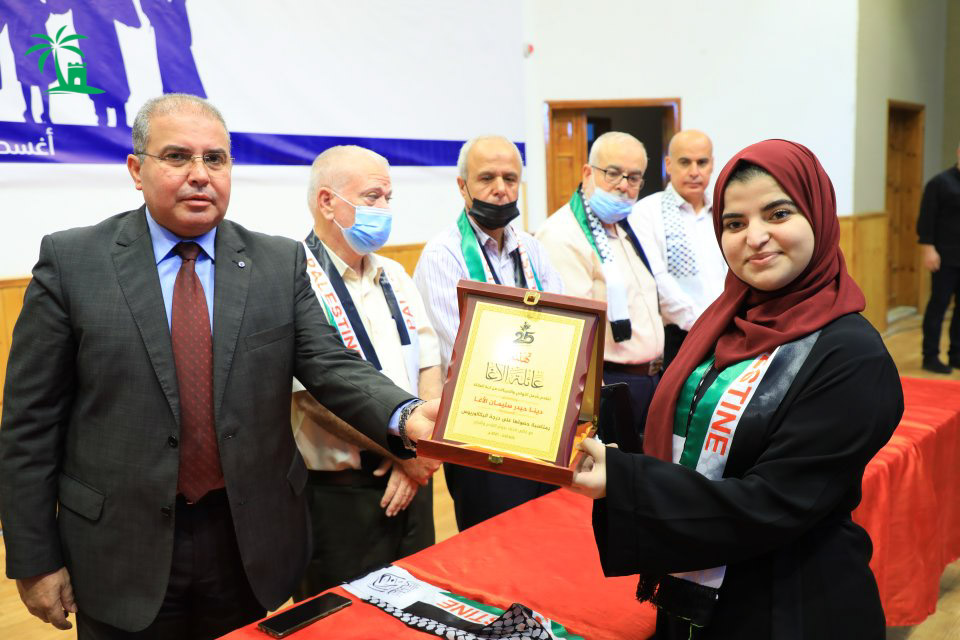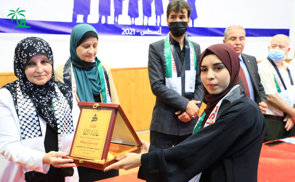 اسراء عبد الكريم صقر الأغا، يتسلمها والدها