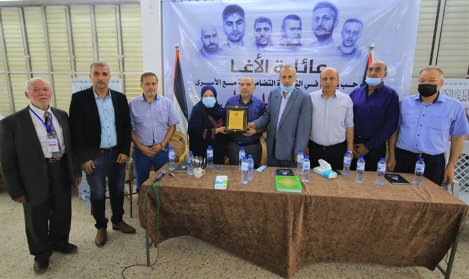 تقديم درعًا تكريميًّا لعائلة الأغا من هيئة شؤون الأسرى والمحررين في قطاع غزة