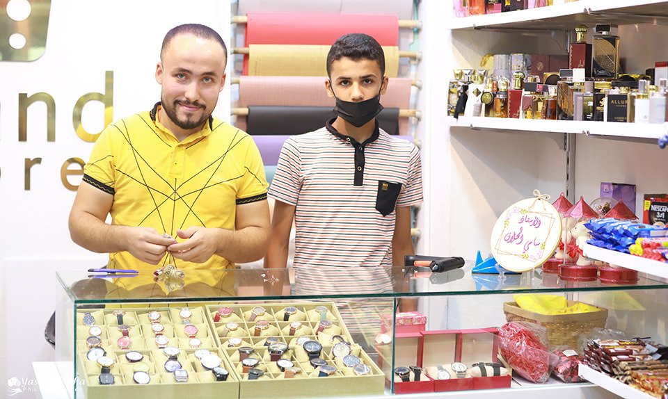 مبارك للأحمدين، أحمد محمد صالح الأغا وأحمد عمار الأغا بافتتاح معرض براند ستور للهدايا والتغليف والشوكلاته الكائن بشارع البحر وسط البلد عمارة زكي الاغا