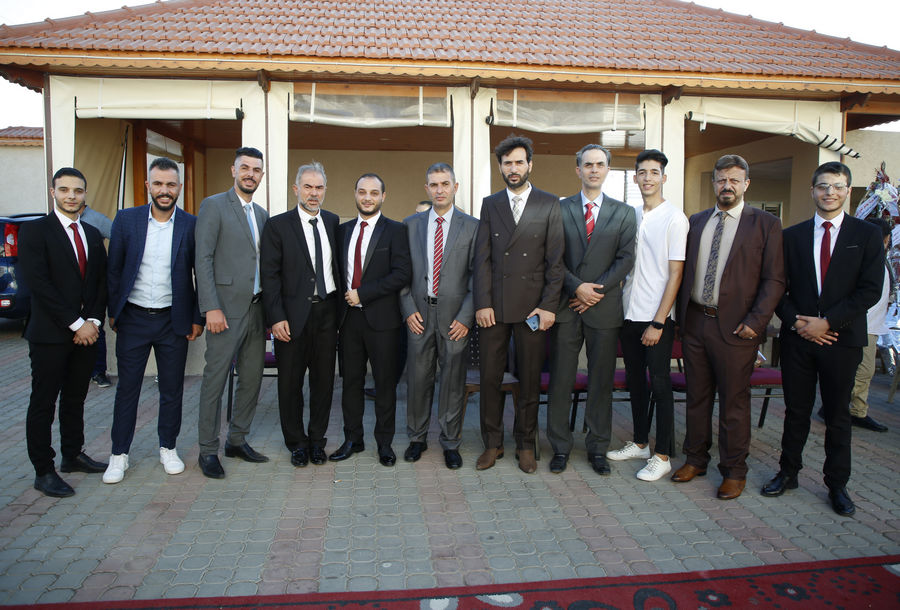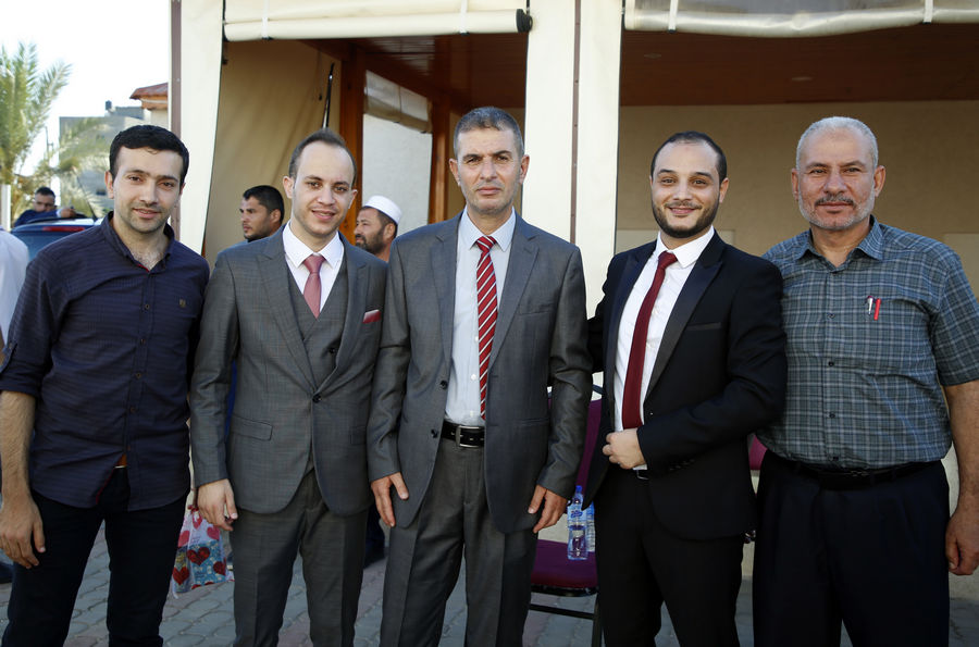 أ.محمد جعفر الاغا(والد العروس)، العريس، أ.ايهاب نظام الاغا(والد العريس)