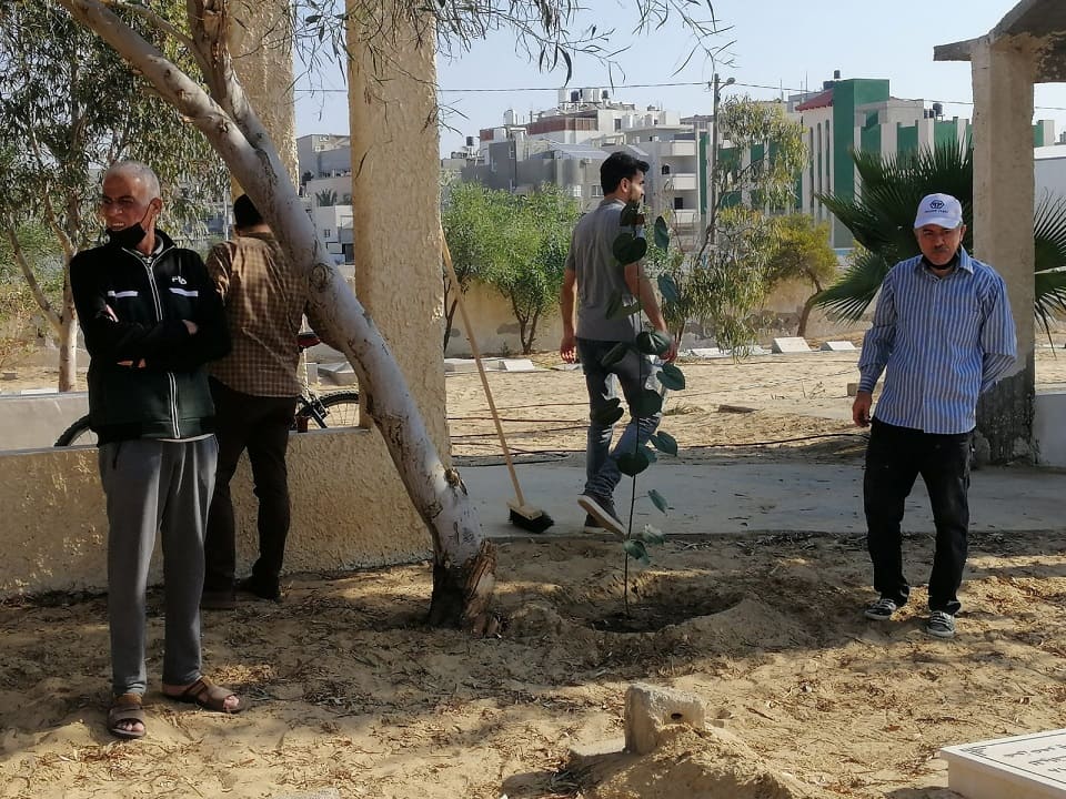 وشارك عشرات من شباب ورجال العائلة في ترتيب وتهذيب المقبرة، كما جرى زراعة نحو 100 شجرة وإعادة ترميم شواهد القبور.