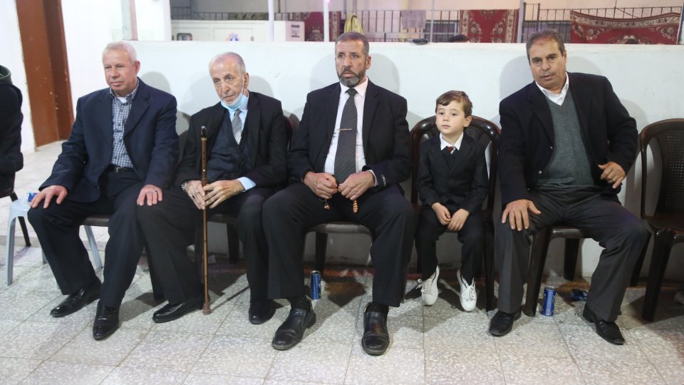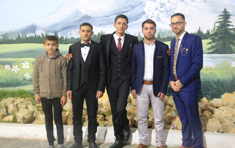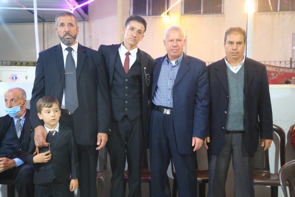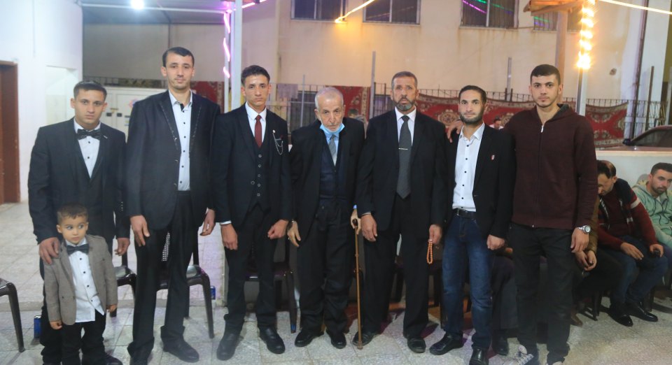 محمود العبادلة زوج شقيقة العريس، محمد شقيق العريس، والد العريس، العريس، ابراهيم شقيق العريس