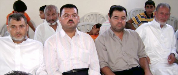 الحاج رمضان(ابو منير)، السيد ضياء فخرى عبد الغفور(شقيق العروس)، العريس، أ.محفوظ نايف متحدثا