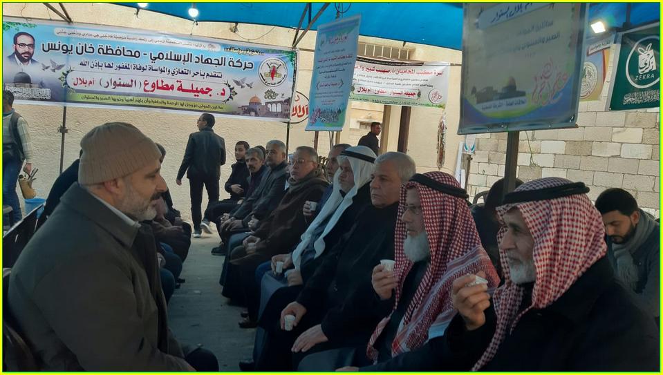 قام وفد من عائلة الأغا، بتقديم واجب العزاء لعائلتي السنوار ومطاوع الكرام، في وفاة د. جميلة السنوار، حرم د. جميل مطاوع رحمها الله تعالى، جاء ذلك خلال زيارة قام بها الوفد لبيت عزاء الفقيدة بمحافظة خان يونس، وقد عبر الوفد الزائر عن خالص عزائه، ومواساته باسم عائلة الأغا، لأسرة الفقيدة، سائلين الله العلي القدير أن يتغمد الفقيدة بواسع رحمته، وأن يسكنها فسيح جناته، وأن يلهم أهلها وذويها الصبر وحسن العزاء، وأن يرحم أمواتنا، وأموات المسلمين أجمعين، وأن يجمعهم في الجنة مع النبيين والصديقين والشهداء، والصالحين، وحسن أولئك رفيقا،إنا لله وانا اليه راجعون.