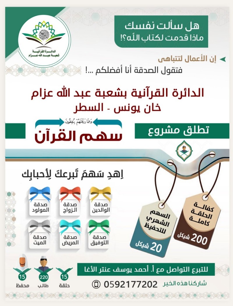 الرئيسة/متفرقات/اِجعلهُ سهماً بِنية الصدقة الجارية عنكَ وعن أبنائِك وأحبابك وعن أمواتك متفرقات اِجعلهُ سهماً بِنية الصدقة الجارية عنكَ وعن أبنائِك وأحبابك وعن أمواتك تاريخ النشر : الأحد | 06-02-2022 | 23:04 2487 اِجعلهُ سهماً بِنية الصدقة الجارية عنكَ وعن أبنائِك وأحبابك وعن أمواتك اضغط هنا للتواصل أو التعرف على أ. أحمد يوسف عنتر شاكر الأغا يمكنك تلقي أحدث الأخبار أول بأول بانضمامك لإحدى مجموعات الواتساب الخاصة بالعائلة من خلال الضغط هنـا اظهر المزيد