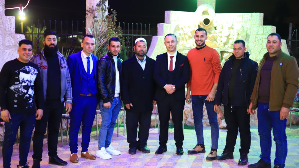 أ. اياد سعدي، أ. مأمون عم العريس، والد العريس، جد العريس، عبد الحميد شقيق العريس، العريس، أ. اسامة سعدي، أمجد مأمون