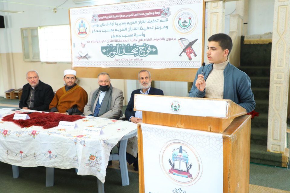 أقام مركز تحفيظ القران الكريم بمسجد جعفر وبالتعاون مع مديرية أوقاف خان يونس الحفل السنوي لتكريم حفظة القرآن الكريم، حيث حضر الحفل جمع غفير من رواد المسجد وأهالي المنطقة، وعلى رأسهم معالي الأستاذ الدكتور "أبو رمضان"، محمد رمضان الاغا، والحاج "ابو أحمد" إياد أحمد الأغا مختار عائلة الأغا، وفضيلة الدكتور محمد صالح الغلبان مدير أوقاف خان يونس، وفضيلة الشيخ وجيه العبادلة رئيس قسم التحفيظ بمديرية أوقاف خان يونس، وفضيلة الشيخ محمد عبد الشفوق الأسطل رئيس شعبة التحفيظ بالمديرية، وفضيلة إمام ومحفظ مسجد جعفر الشيخ محمد عوني الأغا، وقد كرم المركز واحدا وخمسين طالبا، منهم سبعة عشر طالبا ممن أتموا حفظ القران الكريم كاملا.