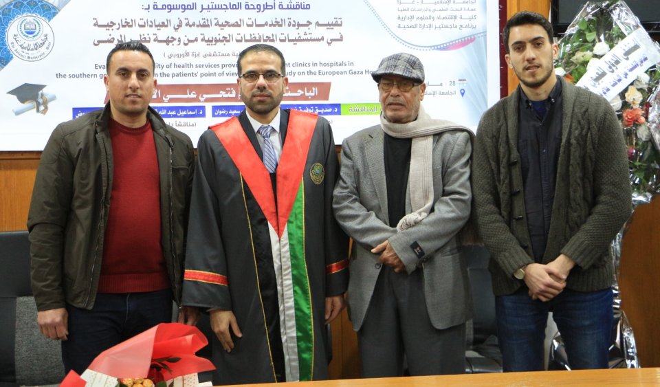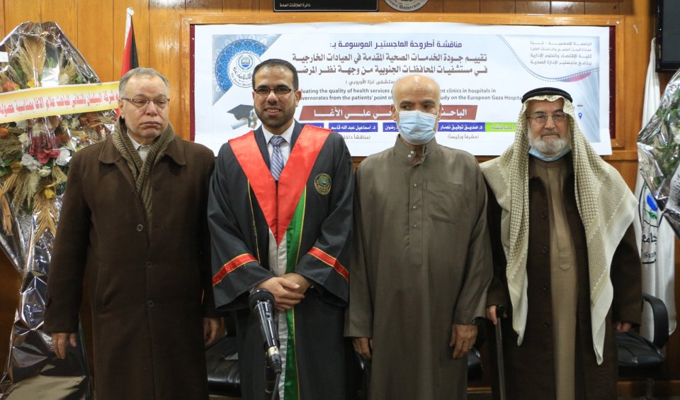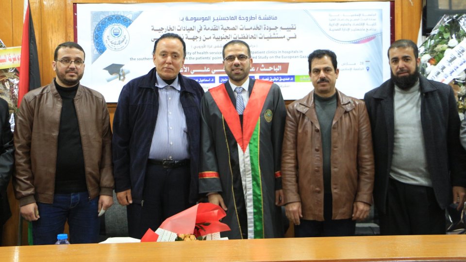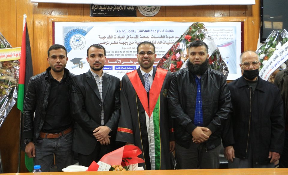 2022-03-29 تم بحمد الله وتوفيقه منح أ. علام فتحي علي عثمان الأغا درجة ماجستير تخصص إدارة صحية من جامعة الجامعة الإسلامية- غزة مع أجمل التهاني والأمنيات بالمزيد من التوفيق والسداد والنجاح، سائلين الله عز وجل أن ينتفع به العباد والبلاد.