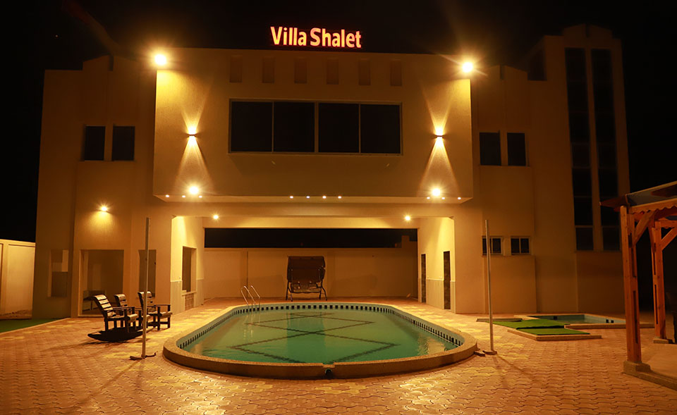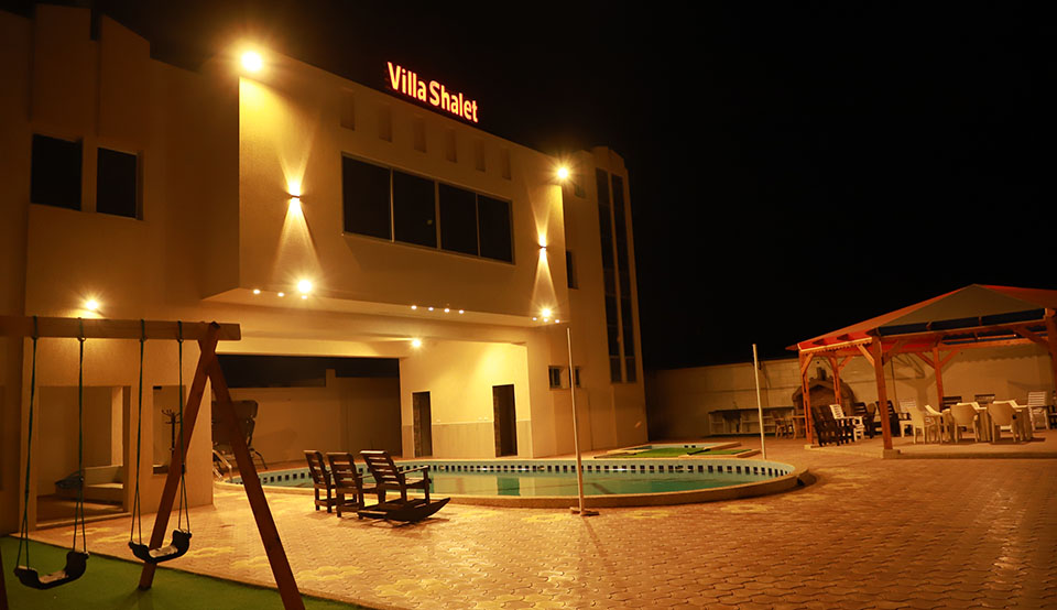 قريبا إفتتاح فيلا شاليه حيث يتميز بالأناقة والتصميم المثالي والمساحات الواسعة لتلبي احتياجاتكم ورغباتكم، فهو يقدم لضيوفه جلسات هادئة حول المسبح تطل على مساحات واسعة من الاشجار والمناظر الطبيعية الجميلة ومظلة بشكل ثماني تتسع لأكثر من 30 شخص خصصت لإقامة الحفلات المناسبات العائلية واماكن مخصصة للشواء ومسبح للأطفال وملعب لكرة السلة ولكرة الطائرة بمساحة 150 متر.