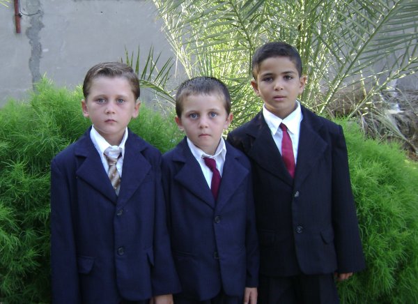 السادة اجالسون: أحمد نايف، الحاج عدنان صالح(عم العريس)وحفيده عدنان، عبدالكريم صقر(خال العريس)،