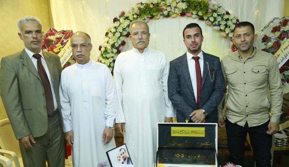 أ. علي عاطف، أ. اياد عمر، أ. عاطف علي، والد العريس، أ. أبو محمد الأسطل