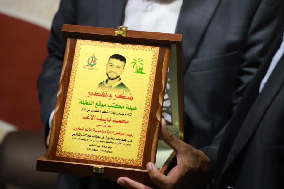 في إطار الرؤية الشاملة التي تتبناها هيئة مكتب موقع النخلة، وضمن سياسة الانفتاح على كل مكونات المشهد العائلي، فقد أجرت هيئة المكتب مؤخرا اتصالات مكثفة مع العديد من أبناء العائلة في الداخل والخارج، حيث تركزت المشاورات حول الرؤية، والمشاريع المستقبلية لموقع النخلة، وفي هذا السياق، وبعد عدة لقاءات تخللتها مشاورات تفصيلية ومكثفة، فقد تم الاتفاق بين هيئة المكتب، ومجموعة الأغا للبترول، ممثلة برئيس مجلس إدارتها الأخ أبو عيسى على أن تتكفل المجموعة بتغطية تكلفة خدمة الرسائل القصيرة الخاصة بالعائلة، ولمدة ستة أشهر قابلة للتجديد. يذكر أن مجموعة الأغا للبترول لديها العديد من الفروع على مستوى قطاع غزة، وهي:
