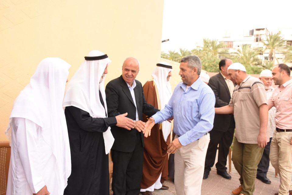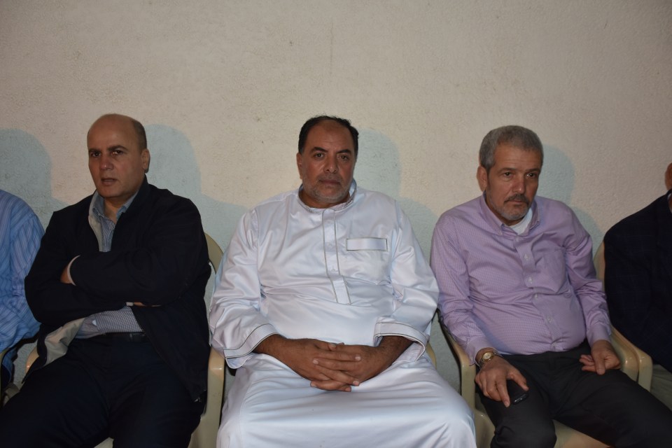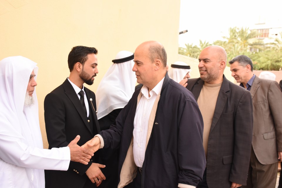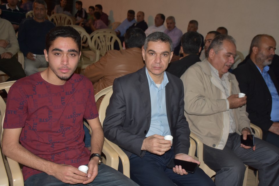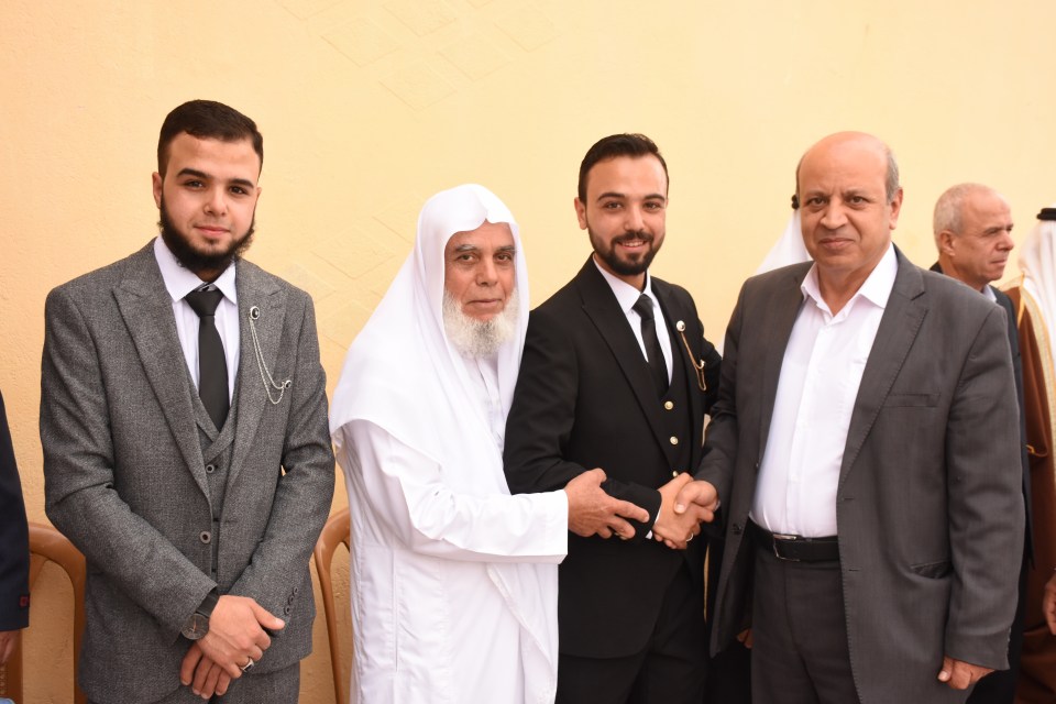 الحاج صلاح الدين غانم (عم العريس) ، الحاج ياسر غانم (والد العريس) ، الدكتور أشرف عمر فسفوس ( والد العروس)