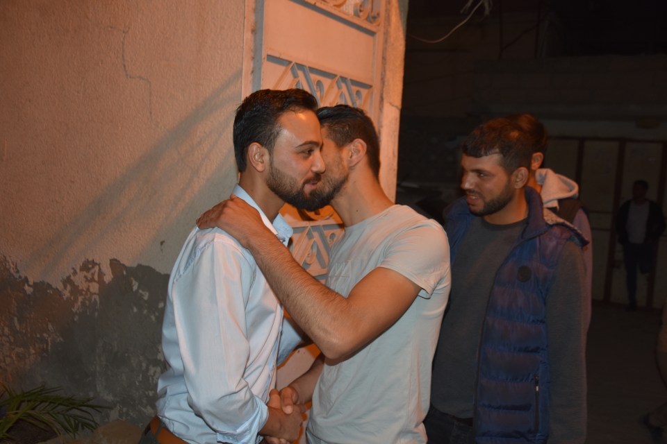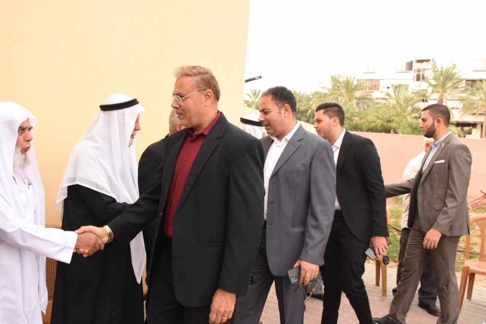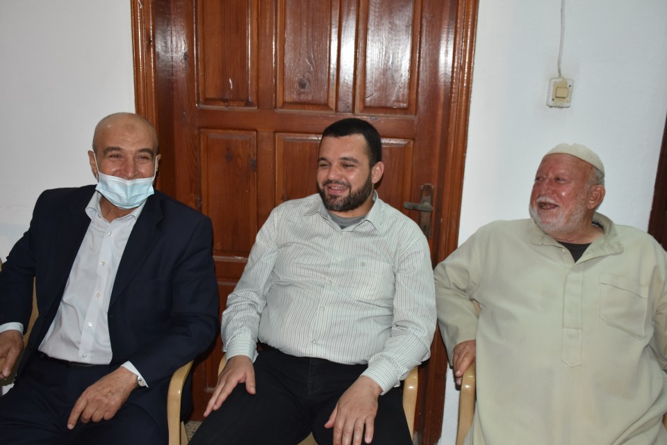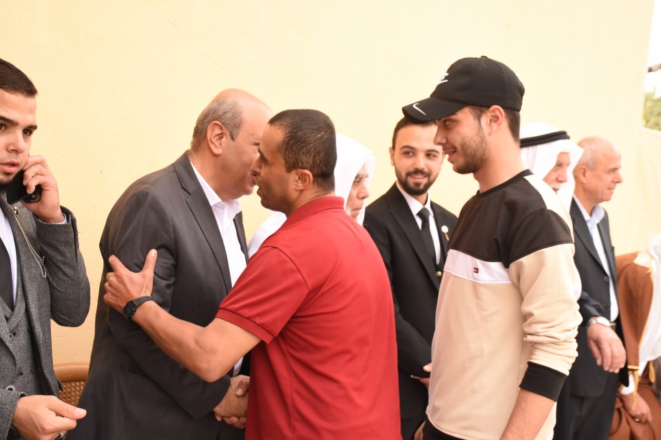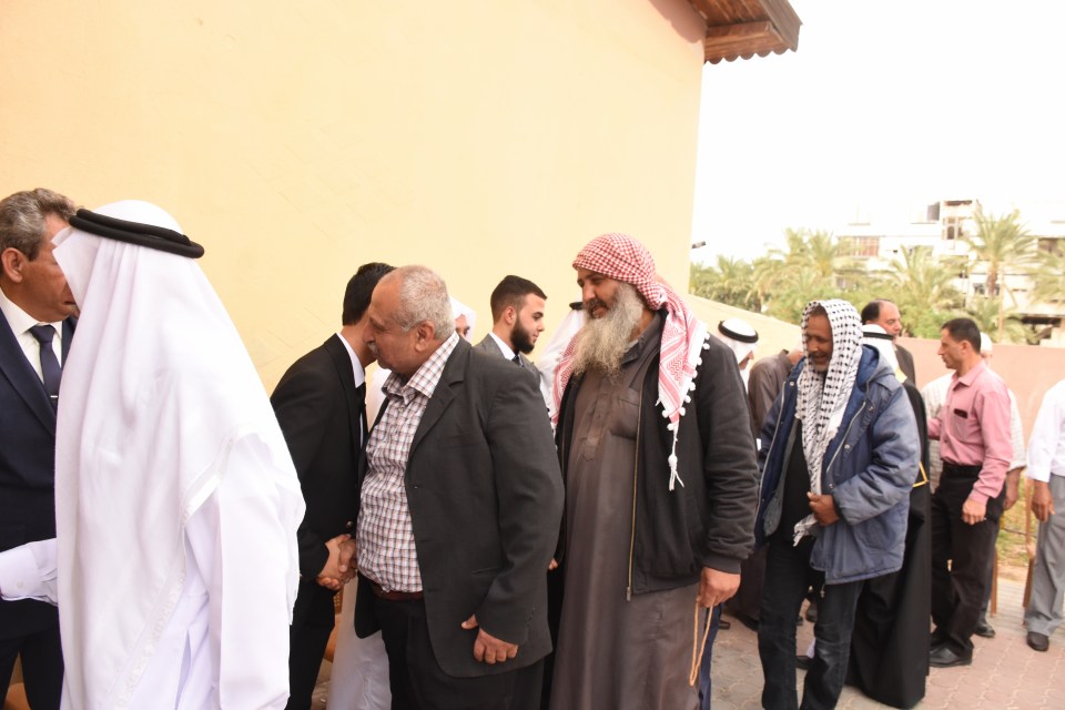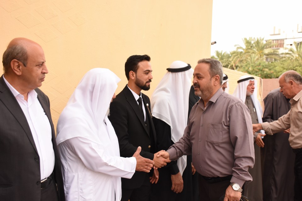 الحاج صلاح الدين غانم (عم العريس) ، الحاج ياسر غانم (والد العريس) ، الدكتور أشرف عمر فسفوس ( والد العروس)