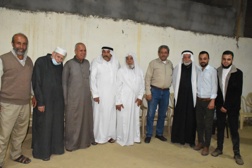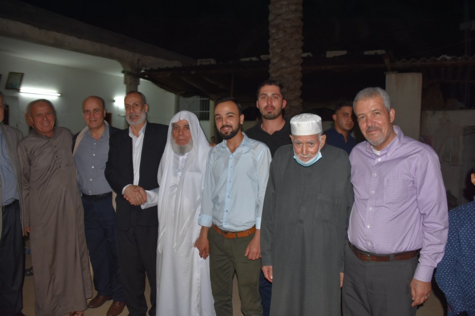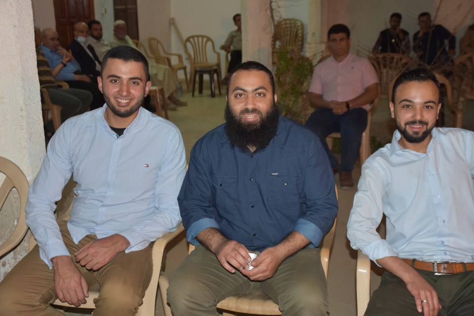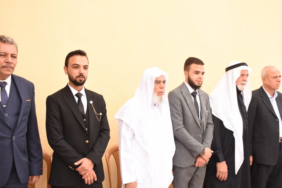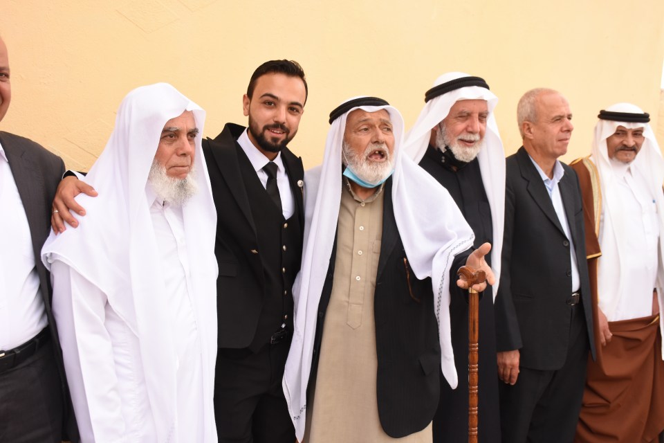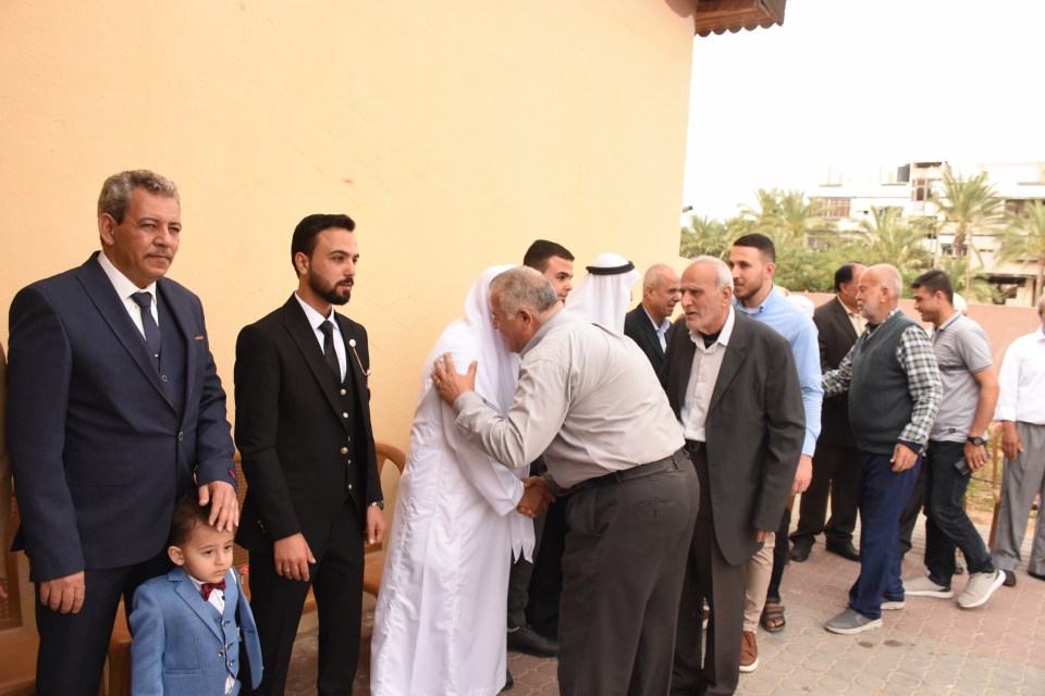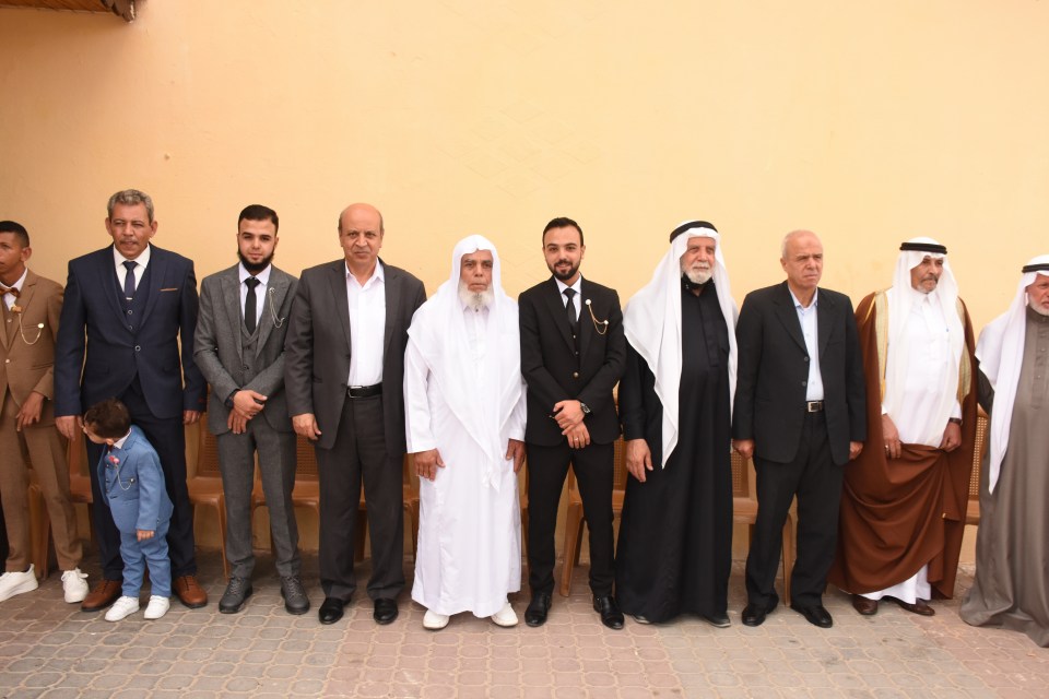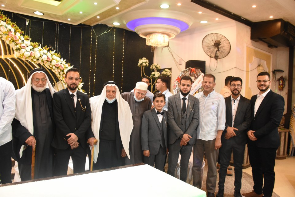 أ. محمد وصفي ، الحاج صلاح الدين غانم (عم العريس) ، الحاج ياسر غانم (والد العريس) ، العريس ، والد العروس ، شقيق العروس ، أصدقاء العريس