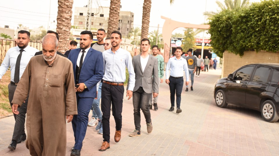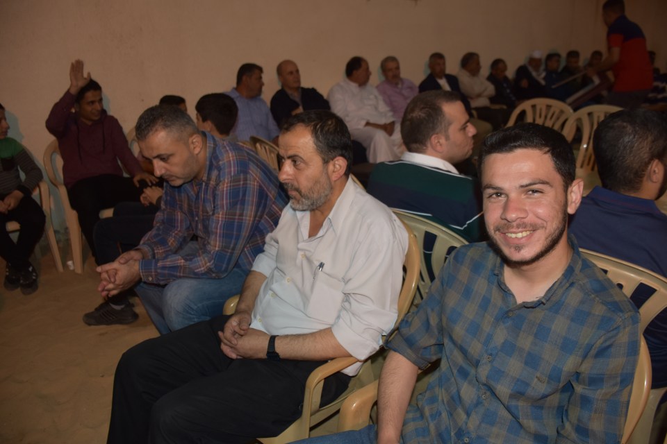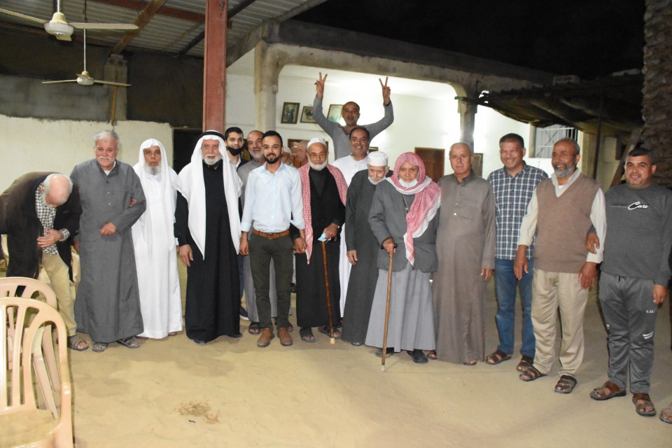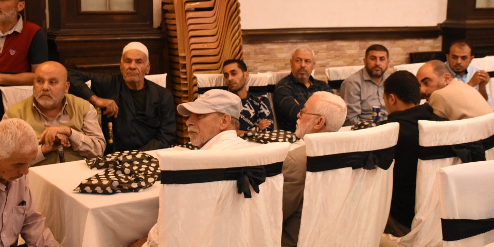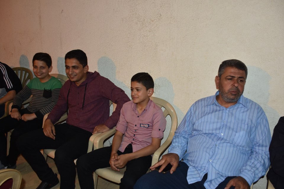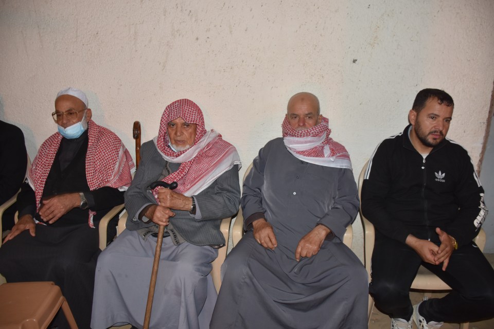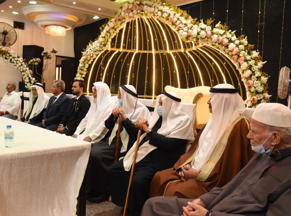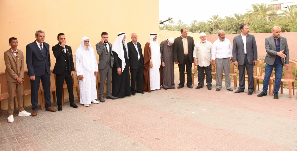 أ. محمد وصفي ، الحاج صلاح الدين غانم (عم العريس) ، الحاج ياسر غانم (والد العريس) ، العريس ، والد العروس ، شقيق العروس ، أصدقاء العريس