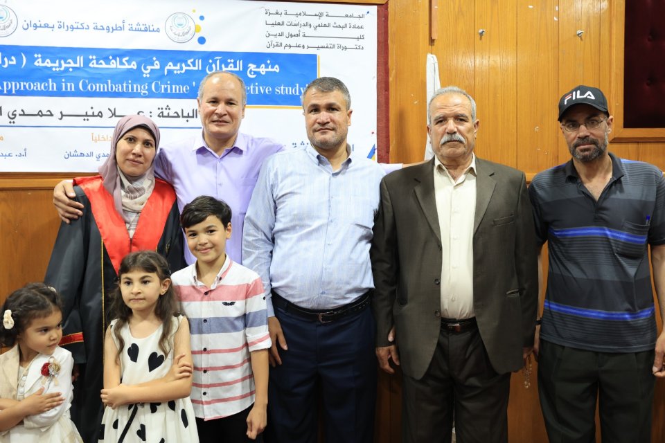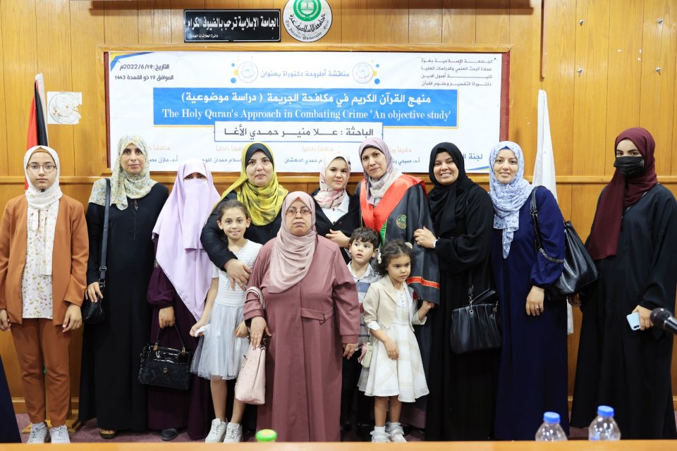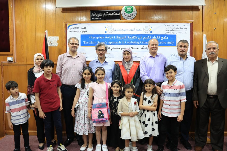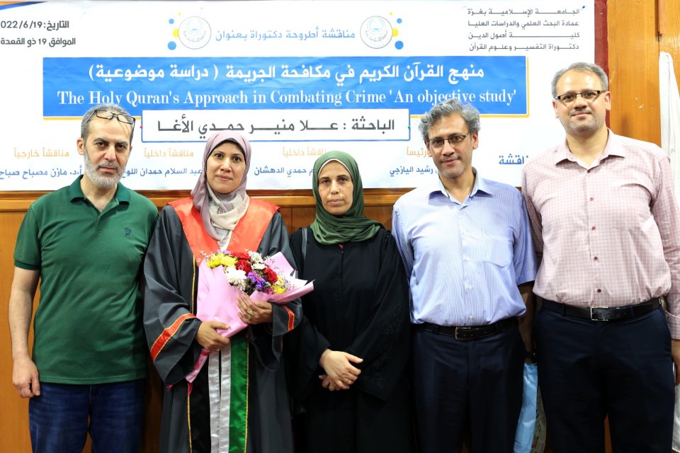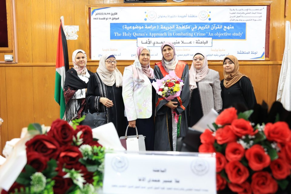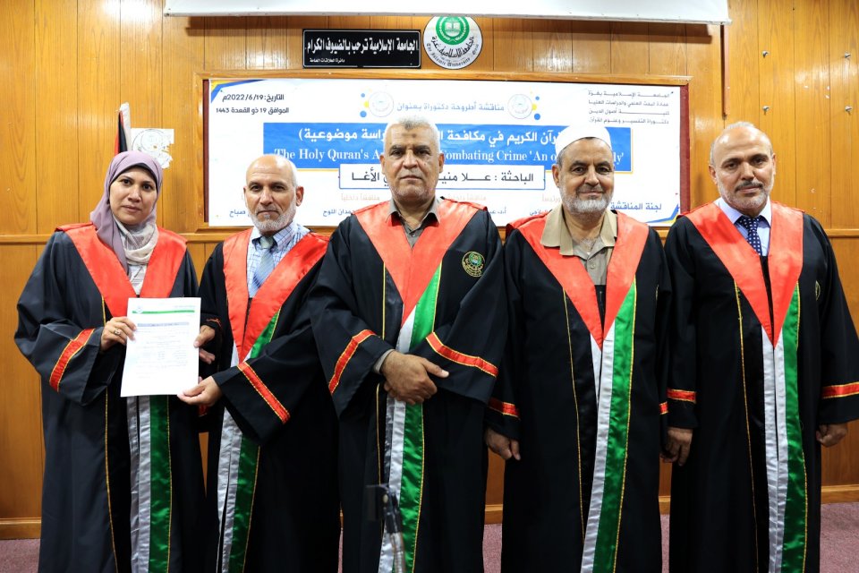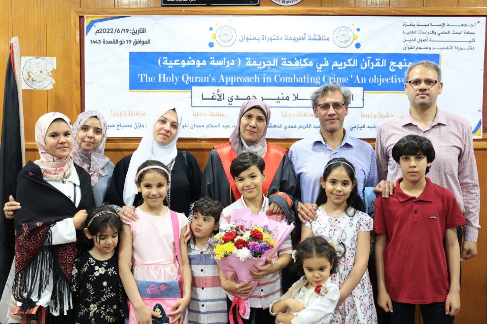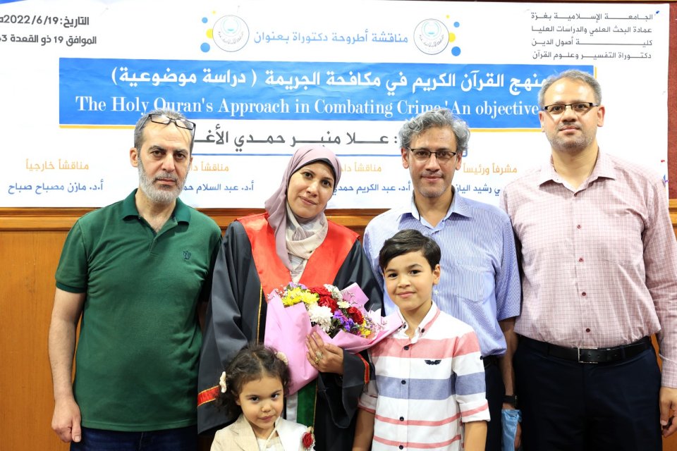 2022-07-14 تم بحمد الله وتوفيقه منح الدكتورة علا منير حمدي حسين الأغا درجة الدكتوراة من كلية أصول الدين جامعة الجامعة الاسلامية مع أجمل التهاني والأمنيات بالمزيد من التوفيق والسداد والنجاح، سائلين الله عز وجل أن ينتفع به العباد والبلاد.