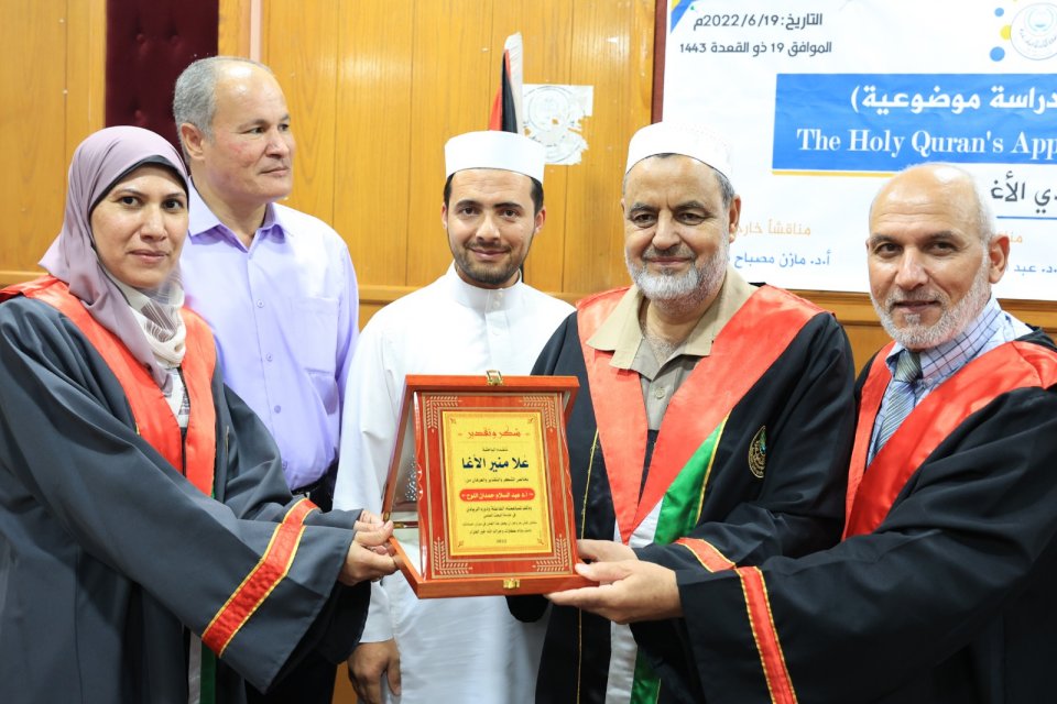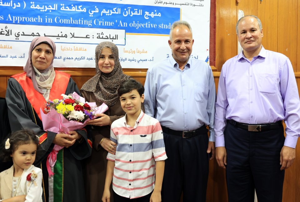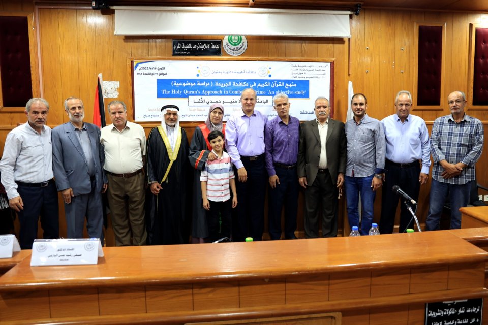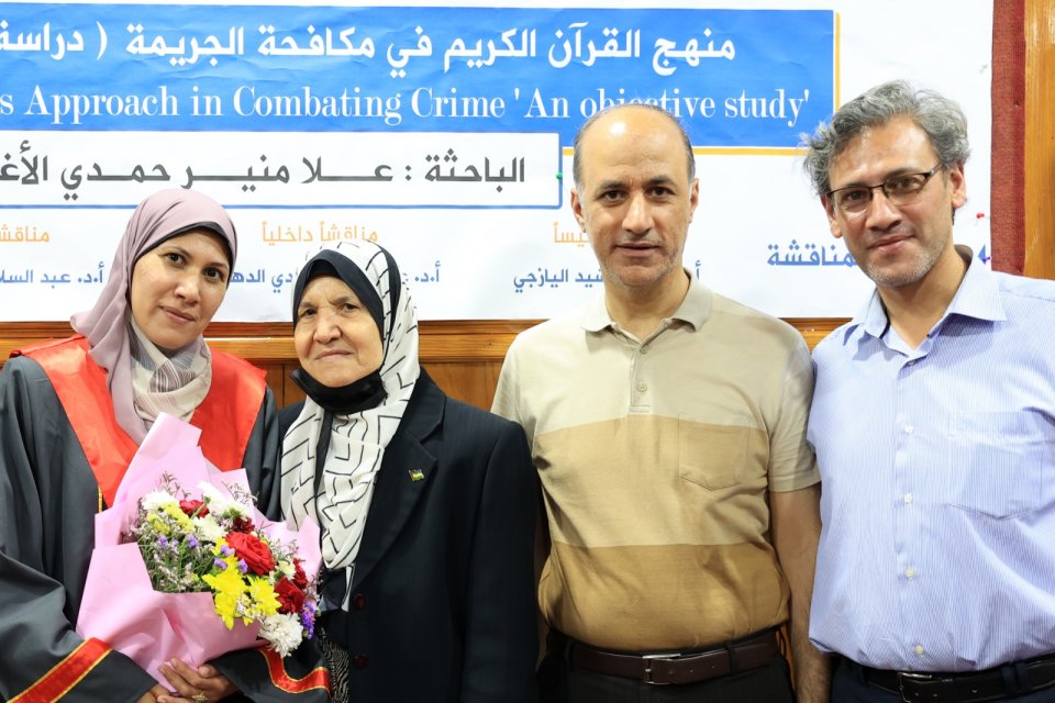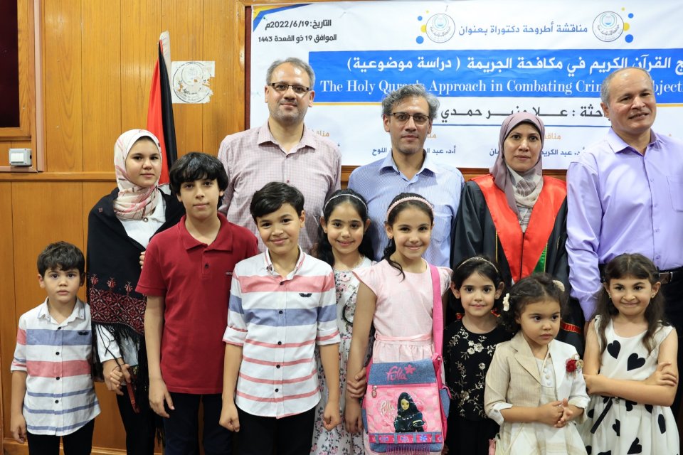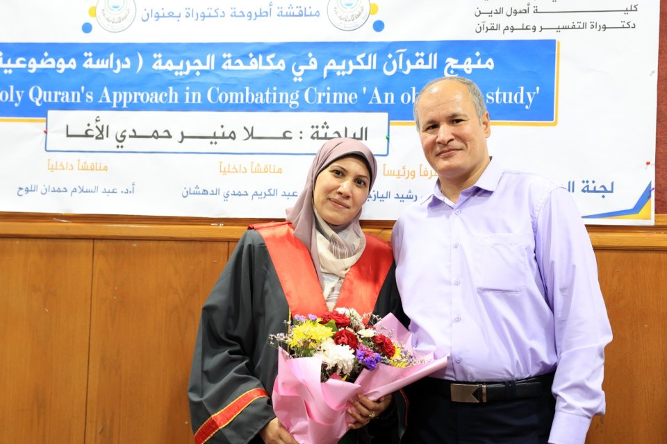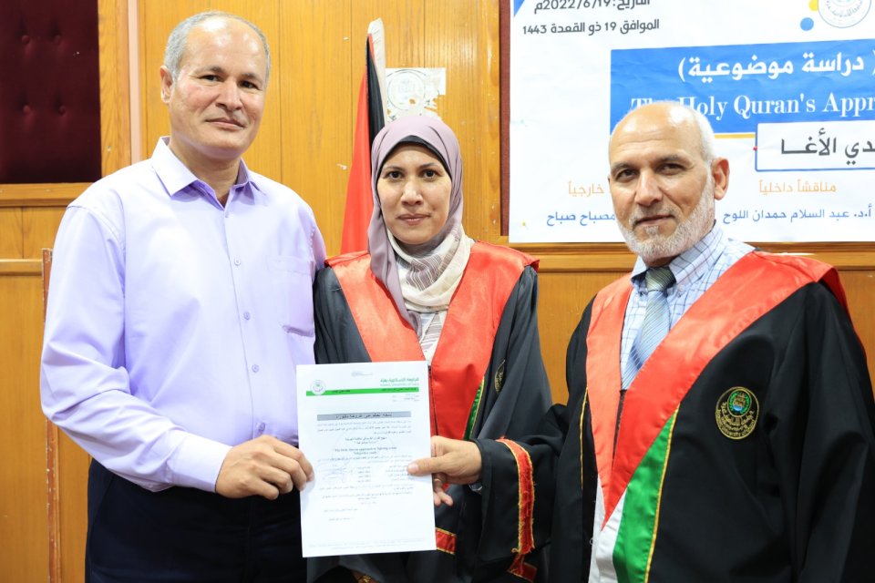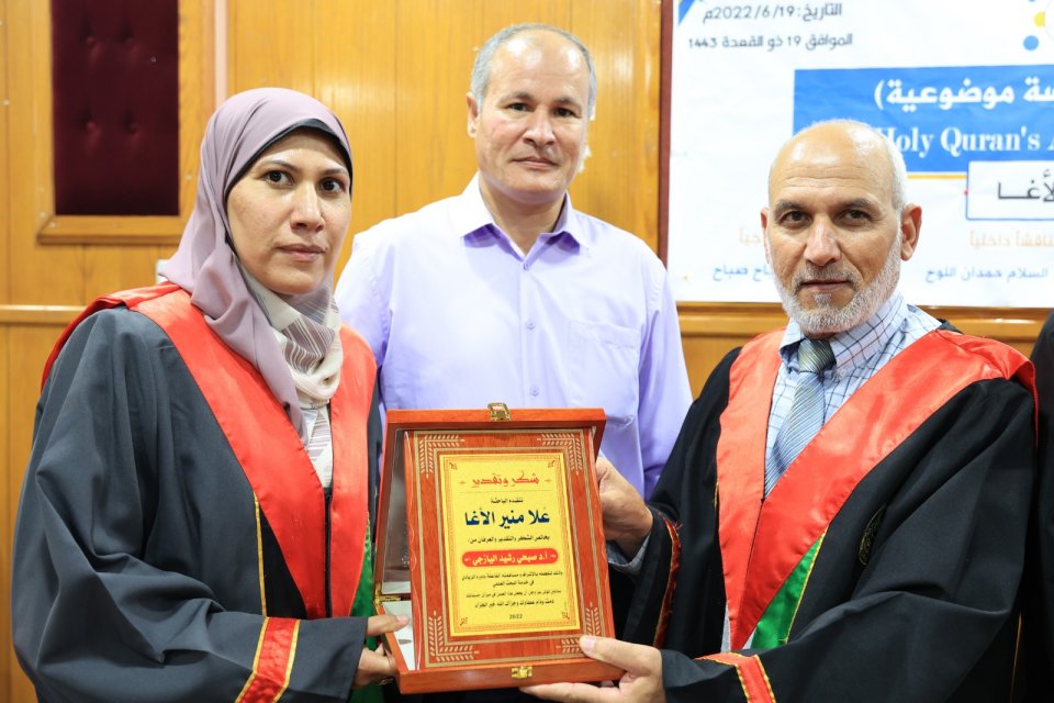 2022-07-14 تم بحمد الله وتوفيقه منح الدكتورة علا منير حمدي حسين الأغا درجة الدكتوراة من كلية أصول الدين جامعة الجامعة الاسلامية مع أجمل التهاني والأمنيات بالمزيد من التوفيق والسداد والنجاح، سائلين الله عز وجل أن ينتفع به العباد والبلاد.