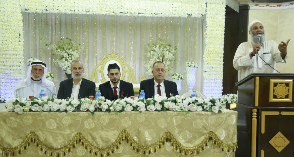 الشيخ منهل متحدثا، أ.علاء الدين فهمي والد العريس، أ. محمد علاء الدين العريس، المختار اياد أبو احمد ، أ. وليد حسني والد العروس