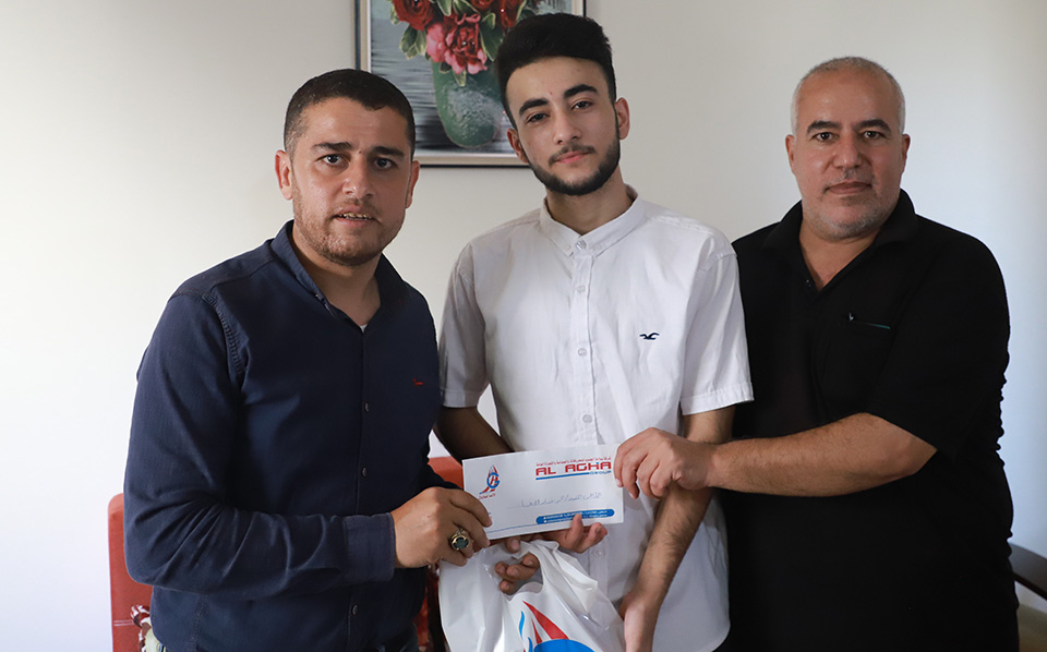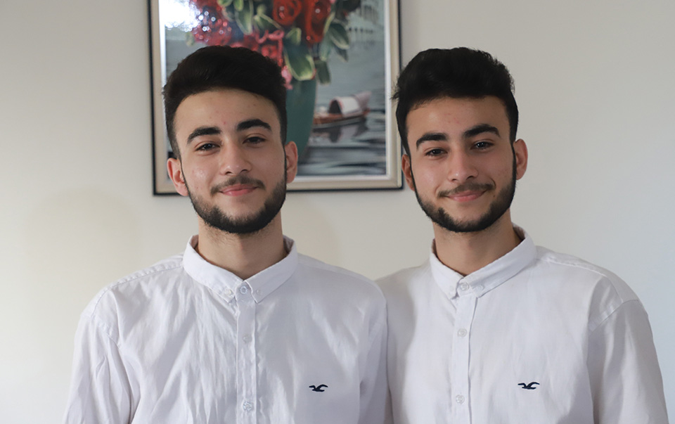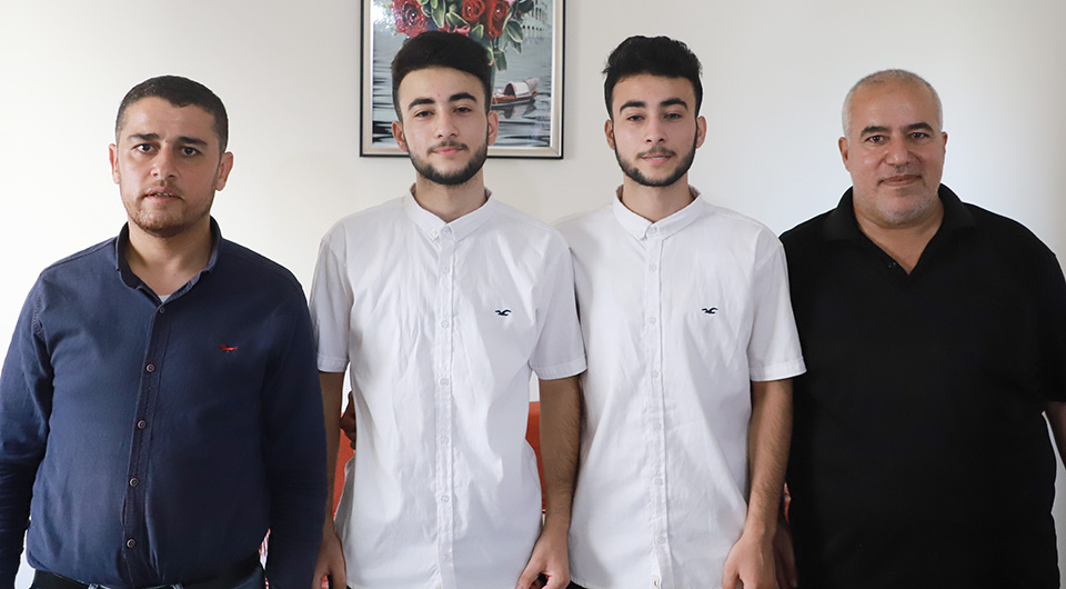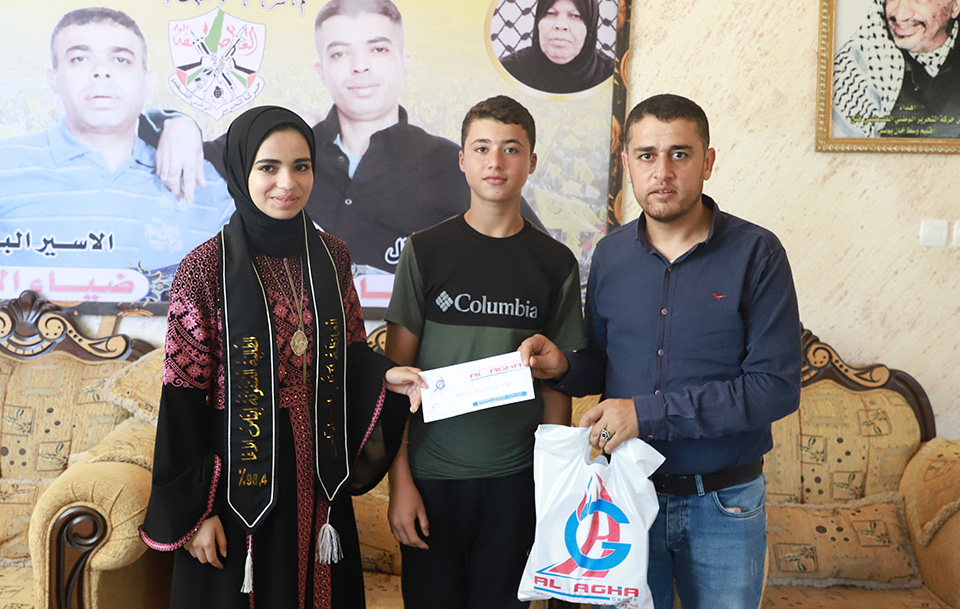 المتفوق عيد عشان الأغا الحاصل على معدل 95.90% برفقة شقيقه المتفوق خيري الحاصل على معدل 94%