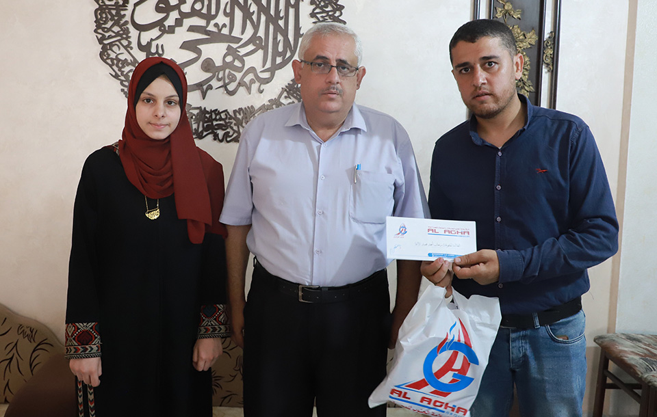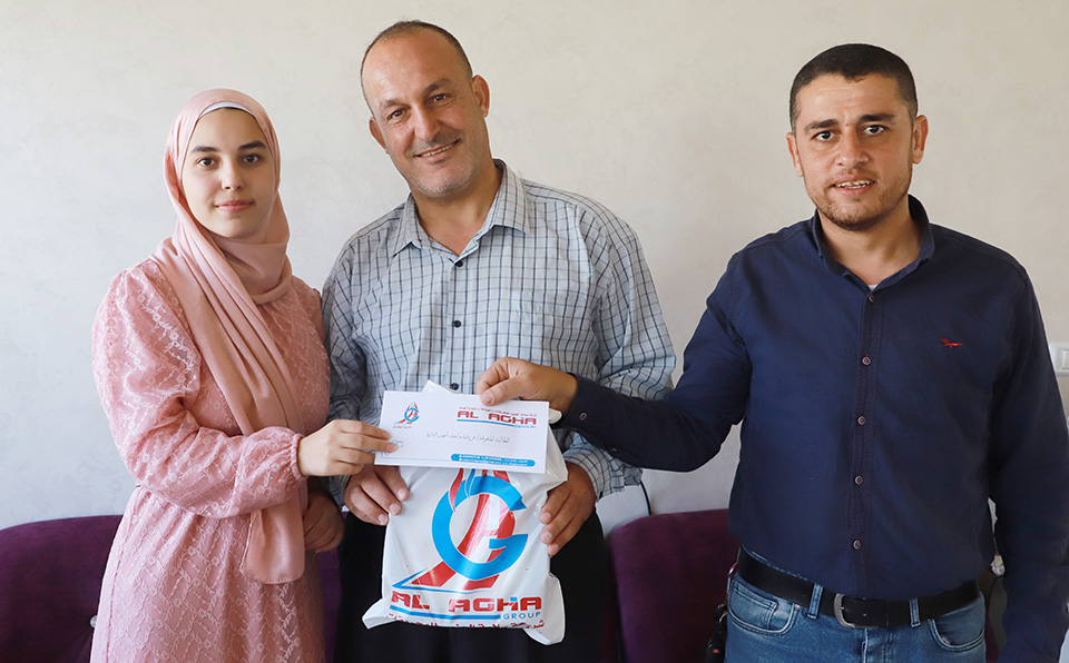 افنان امجد عيسى الاغا العلمي 97.40% يستلمها عنها جدها