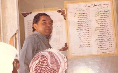 أ. قاسم صالح في الفصل المدرسي مع الطلاب