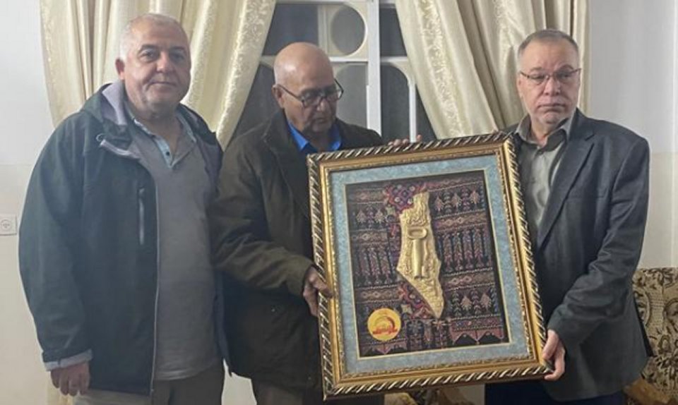 وفي ختام الزيارة قدم الوفد الزائر هدية تذكارية للأستاذ الدكتور أبو رمضان هي عبارة عن لوحة فنية تحمل خارطة فلسطين.