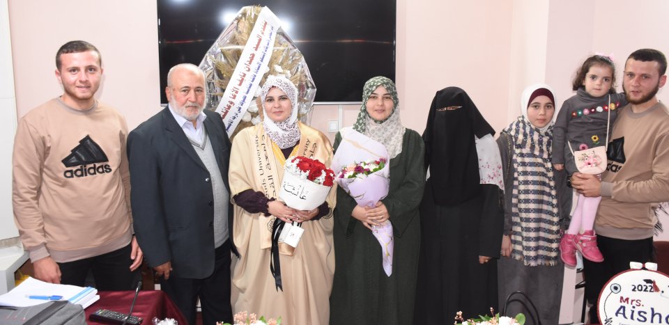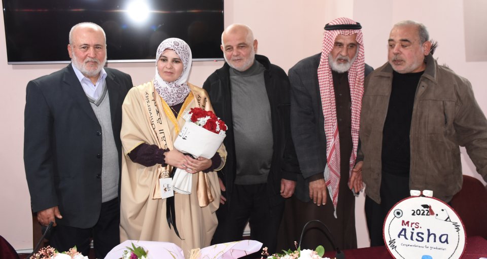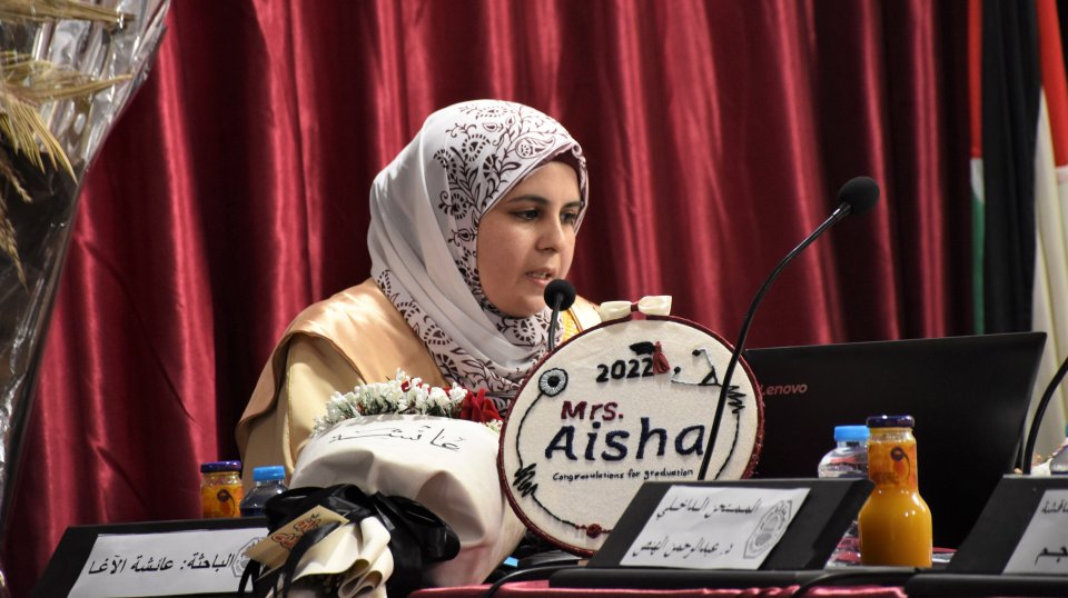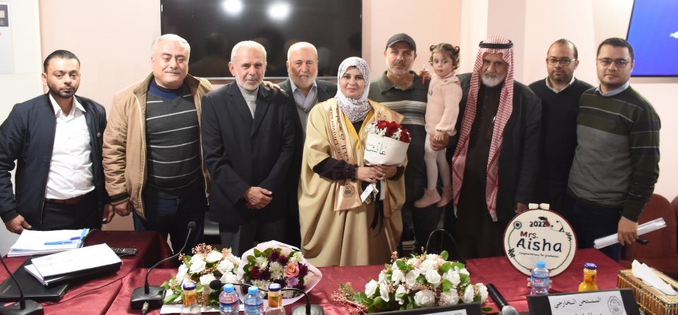 06-12-2022 تم بحمد الله منح الاستاذة عائشة حمدان نايف الأغا درجة الماجستير من جامعة القدس ابوديس تخصص تمريض وكانت الاطروحة موسومة بعنوان:
